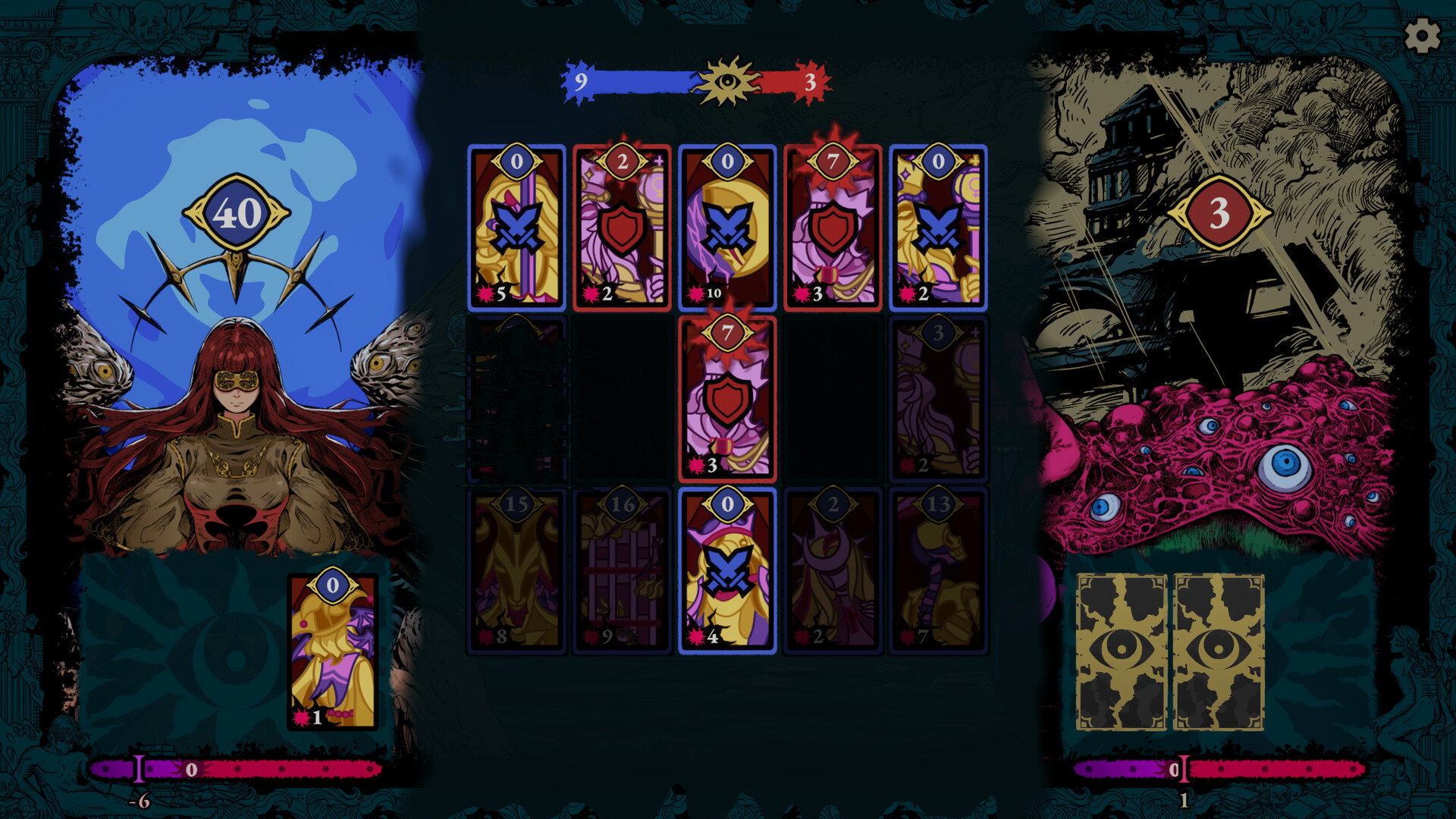 위치 기반 그리드 전투 — Triple Triad와 Othello에서 영감을 받은 고도의 '포위 및 반전' 시스템입니다. 적을 포위하여 카드 격돌을 일으키고, Potentia("권능")를 발휘해 유닛의 제어권을 찬탈하십시오.