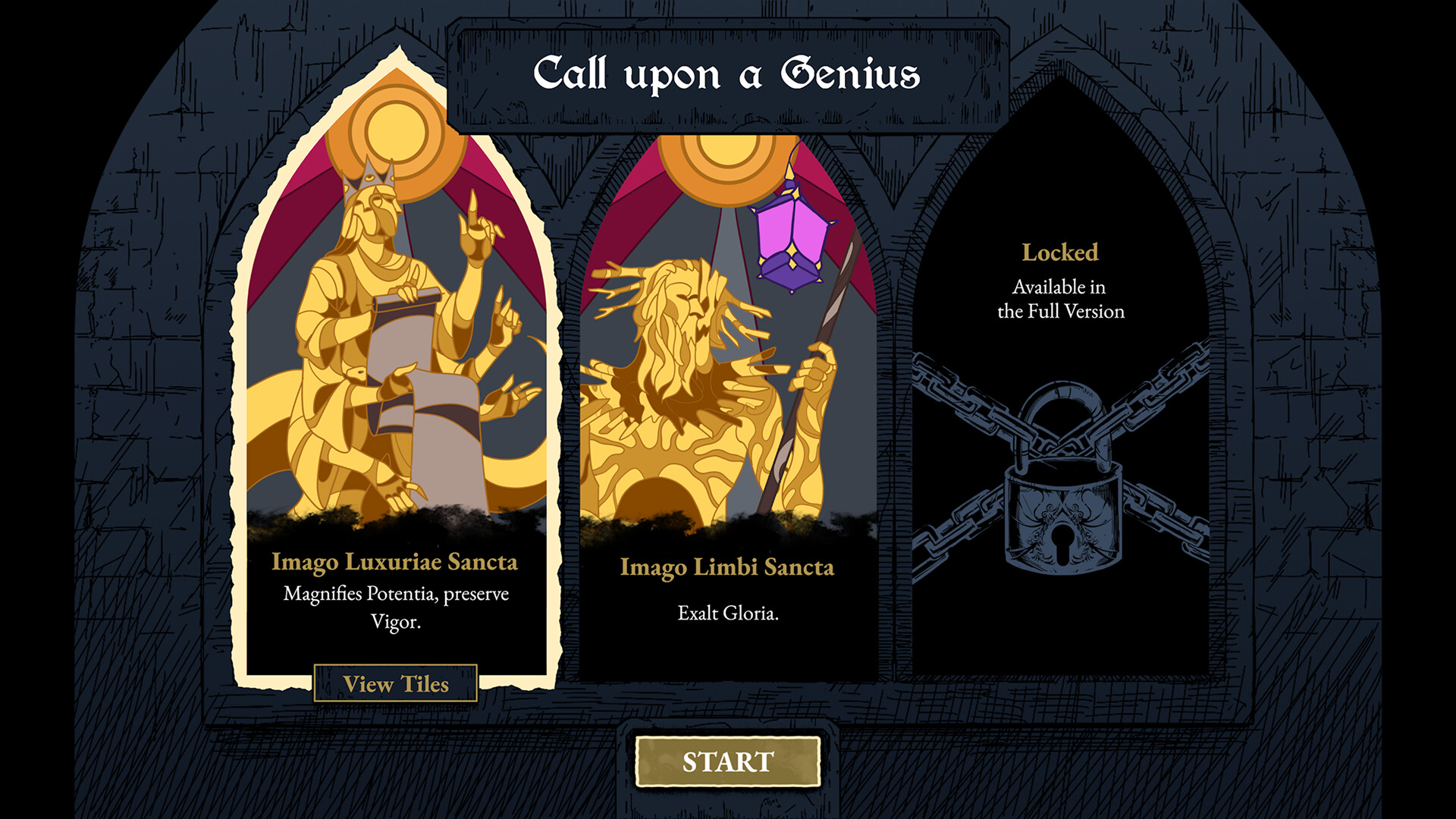 다양한 시작 아키타입 — 여정의 중심이 될 Genius를 선택한 후, 희귀한 Reliquiae("성유물"), Canones("법전"), 타로를 조합해 막을 수 없는 연쇄 반응을 만들어내십시오.