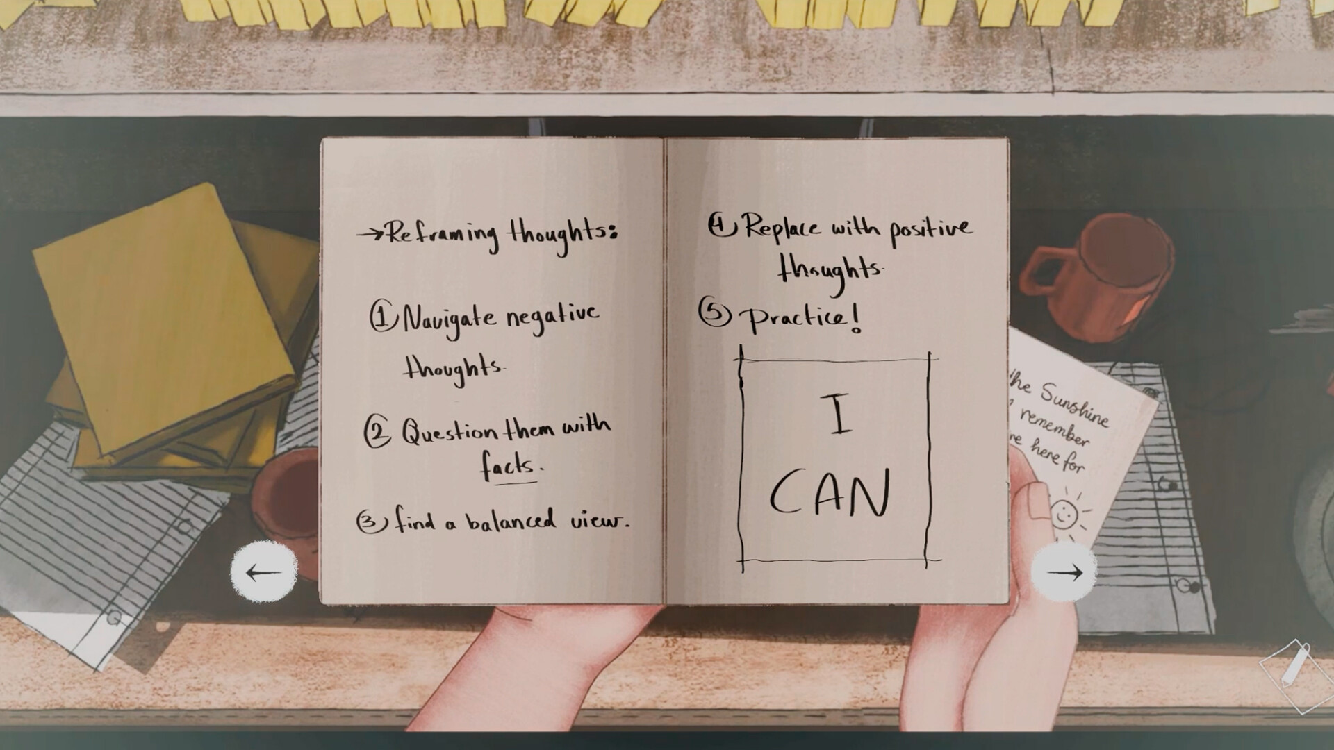 In the Mind, you'll navigate mental blocks and puzzles created by thoughts, guided by Cognitive Behavioral Therapy (CBT) techniques that you'll learn throughout your journey.