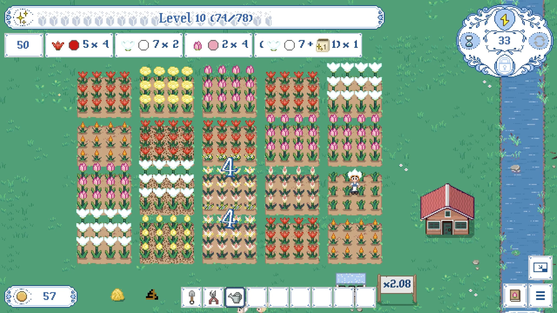 전략과 편안함이 만난 농업 시뮬레이션에서 튤립은 물감이 되고 밭은 캔버스가 됩니다. 꽃을 조화롭게 계획하고 심어서 밭에 우아한 무늬를 그려보세요. 매일 돌보거나 방치 모드로 키우세요. 어느 쪽이든 목표는 단순합니다. 왕에게 걸맞은 아름다움을 창조하는 것이죠.