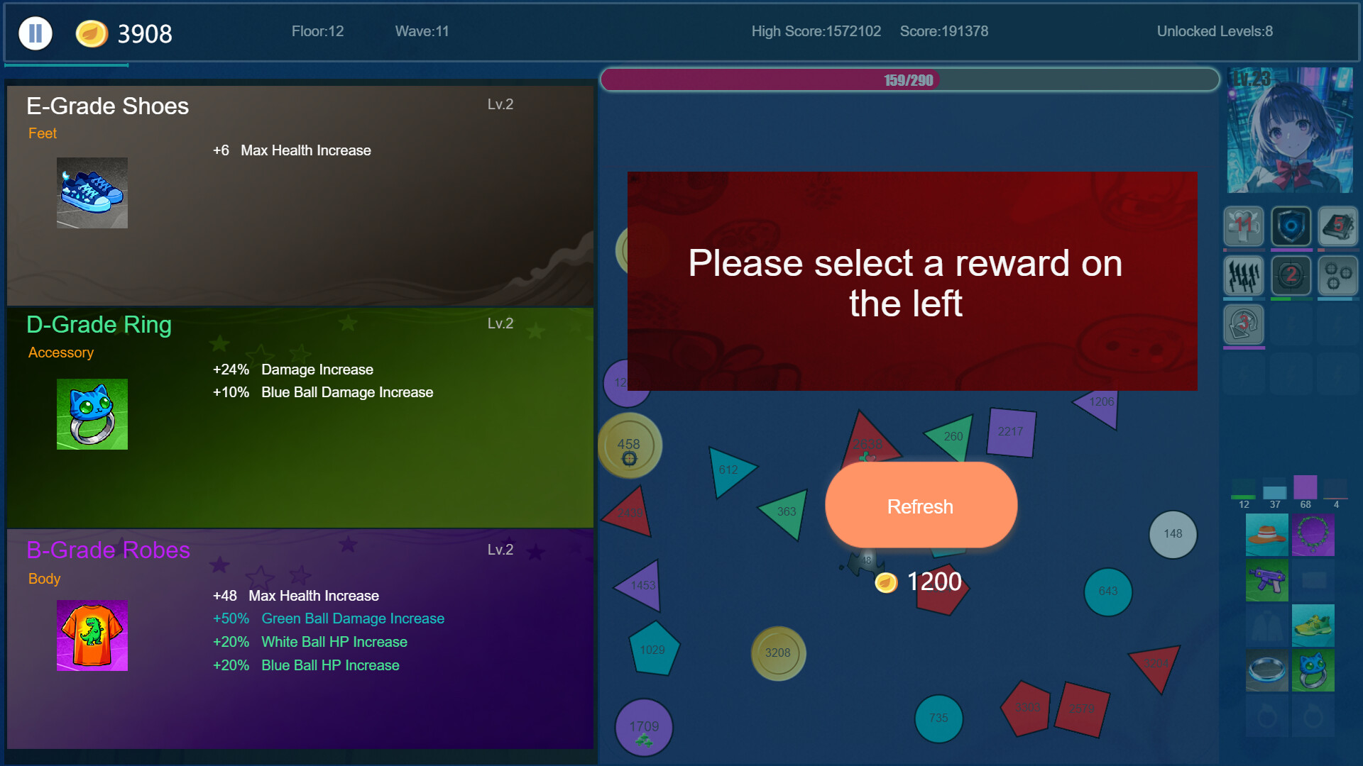 완전히 동일한 핀볼 2개를 드래그하여 모으면 더 높은 레벨의 핀볼로 합성할 수 있습니다.