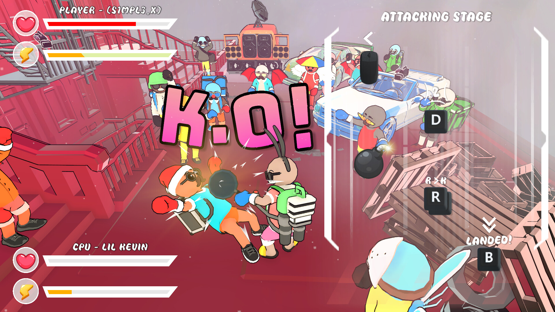 타이밍이 전부인 이 유쾌한 3D 싱글 플레이 격투 게임에서 상대를 때리고, 막고, K.O. 시키세요!