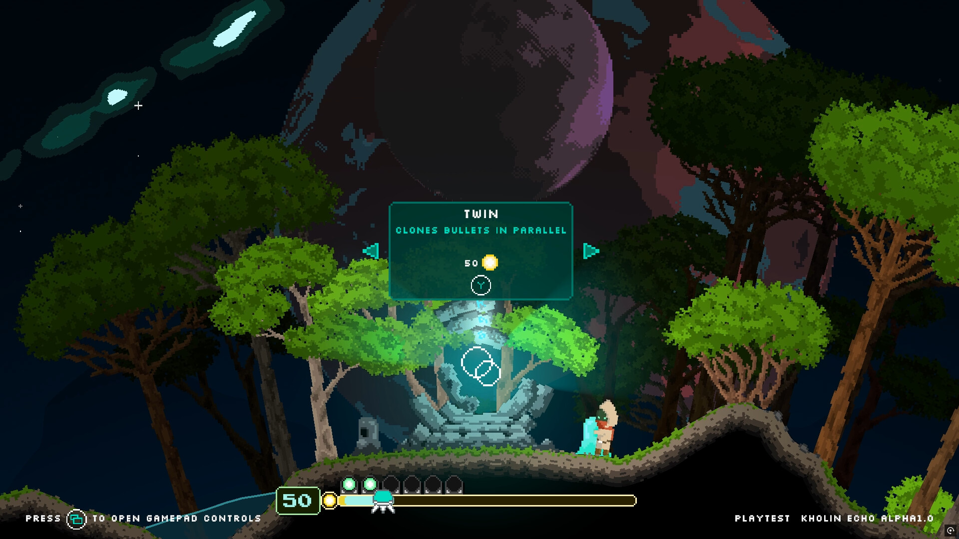 Rune Temple: Upgrade your arm weapon to improve the shoot (Twin, Repeat, Spread)