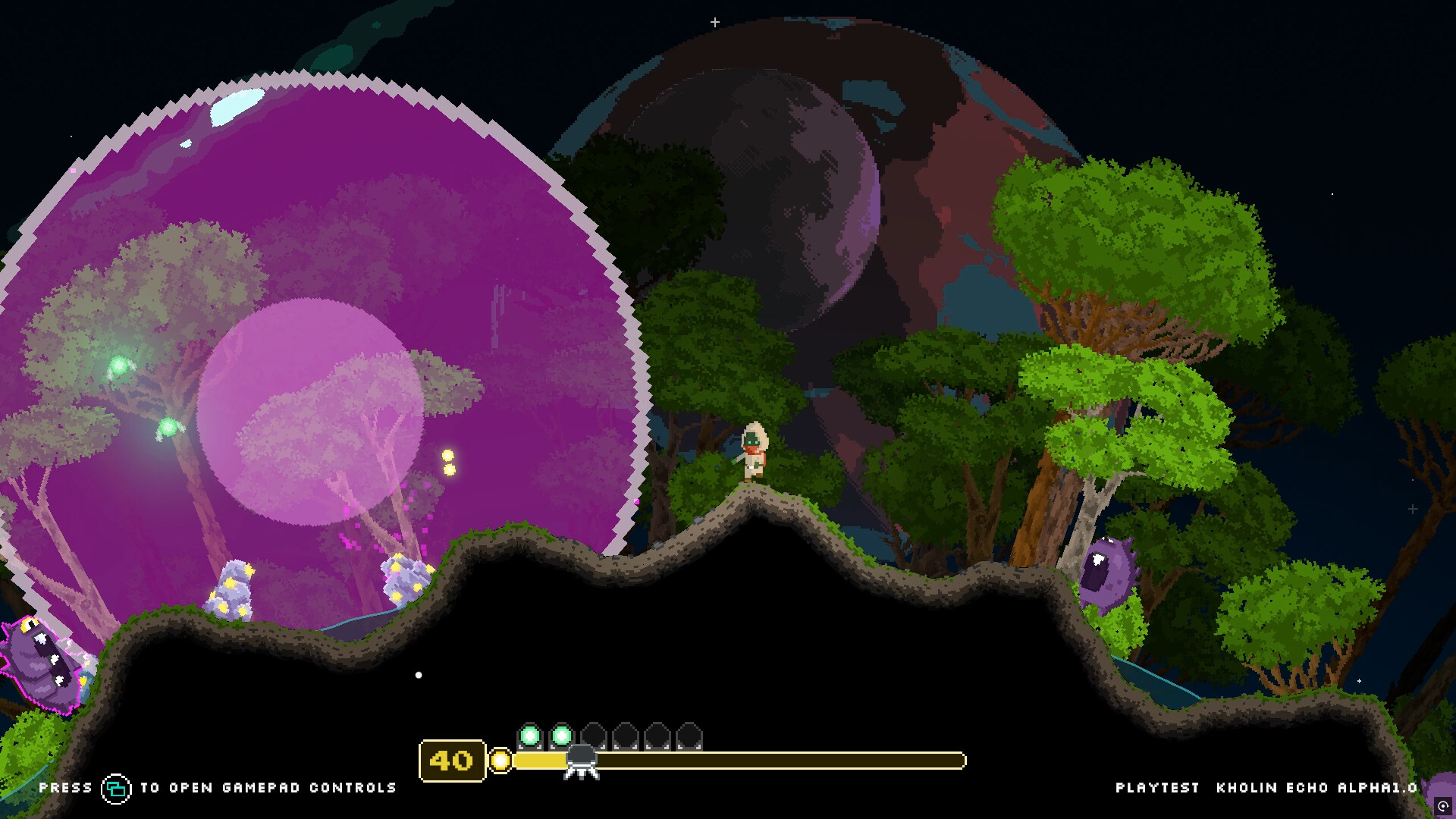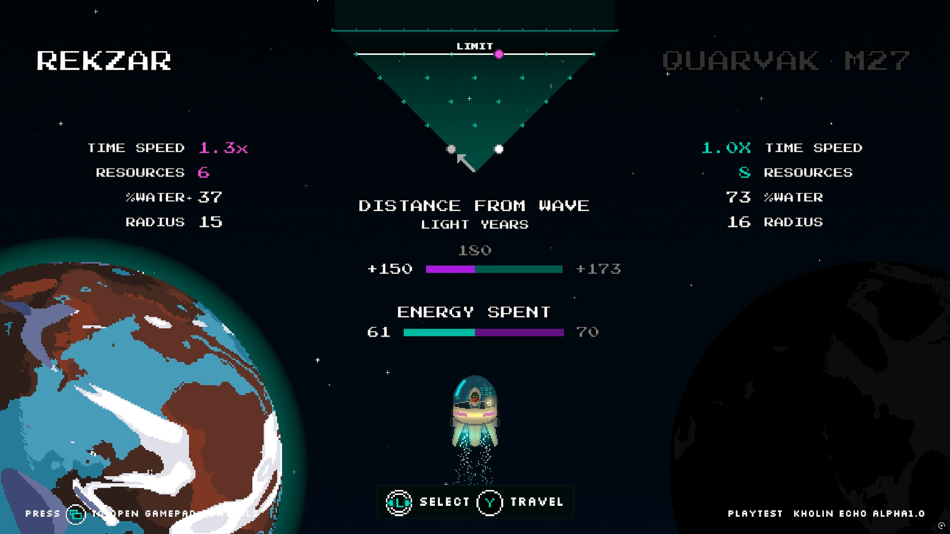 You will be able to play the full loop, from starting in your home planet to reach the limit of the universe when escaping the Oblivion Wave. You can repeat the run and improve sending energy to your home planet and getting new upgrades.