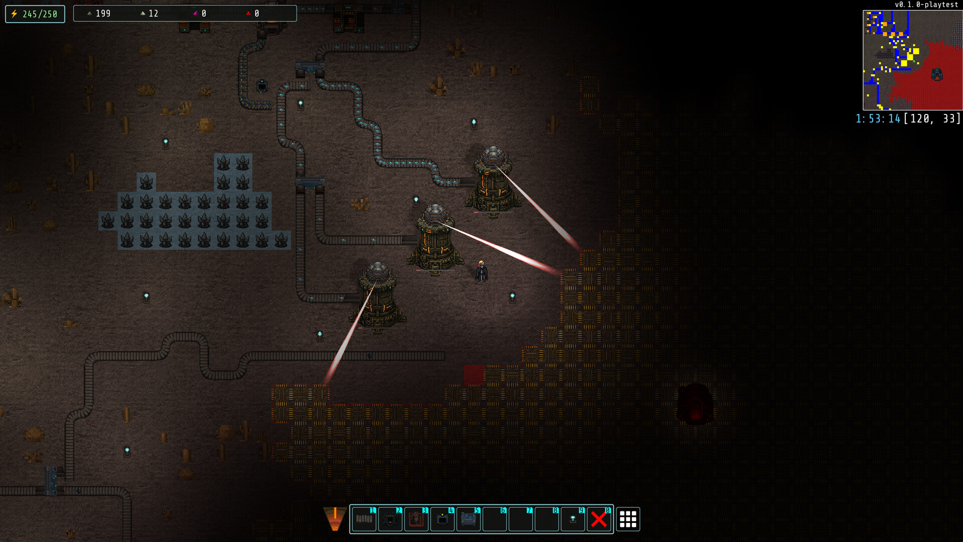 점점 더 자동화되는 공장을 건설하세요. 공장의 생산물은 막대한 에너지를 소비하는 행성 분할 드릴을 만들고 업그레이드하는 데 사용됩니다. 전투 유닛을 제작하고 발전소와 같이 적이 통제하는 구역을 차지하기 위해 싸우는 모습을 지켜보세요. 물류를 통해 폭주하는 초인공지능과의 전쟁에서 승리하는 시스템을 설계하세요.