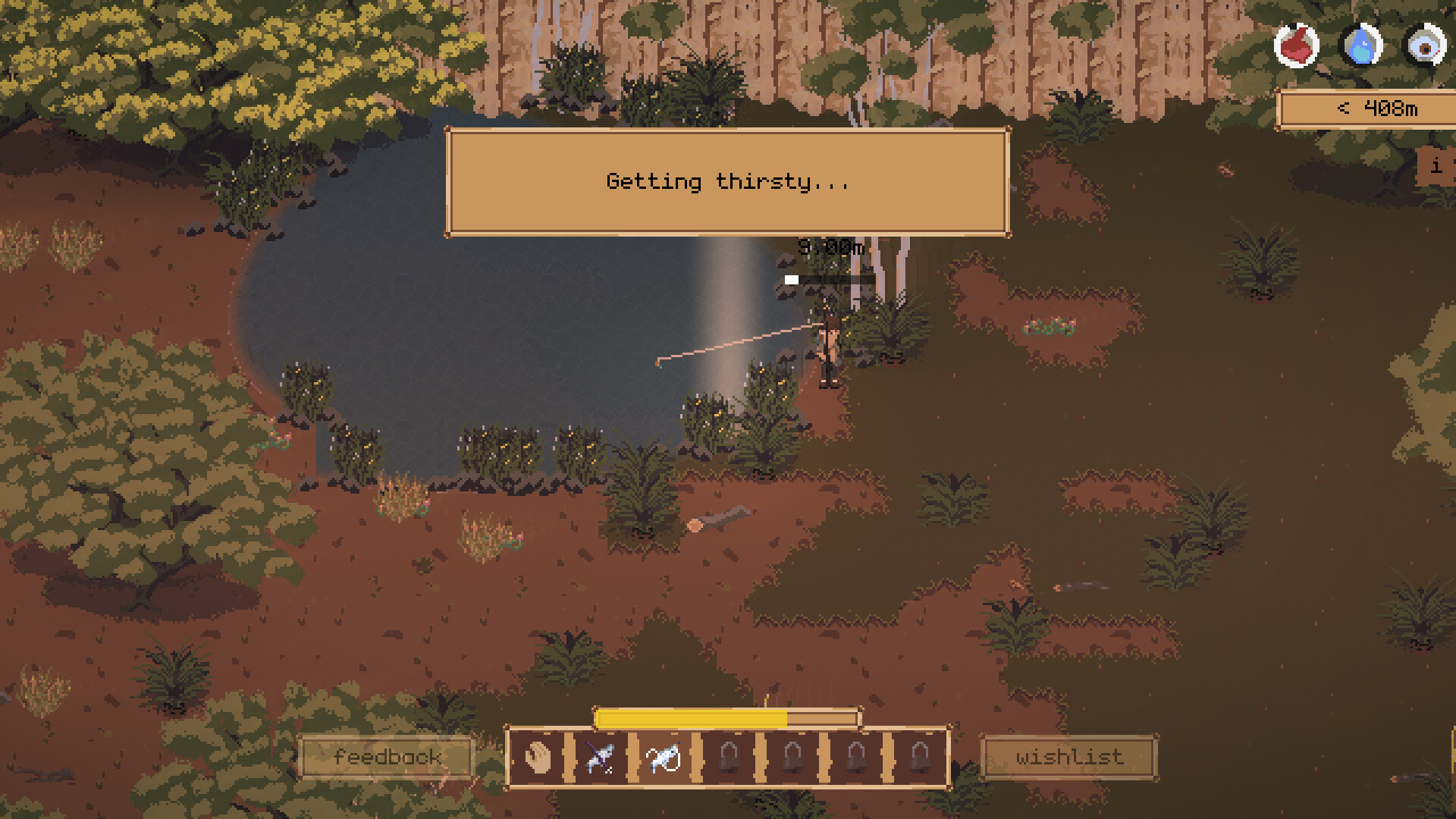 Journey from town to town along a beautiful pixel art coastline, building your skills as a traditional Australian swagman along the way. Fish, cook, and bushcraft to survive, collect additional skills and gear from the locals in the towns you visit, and enjoy the serenity of a simpler life.