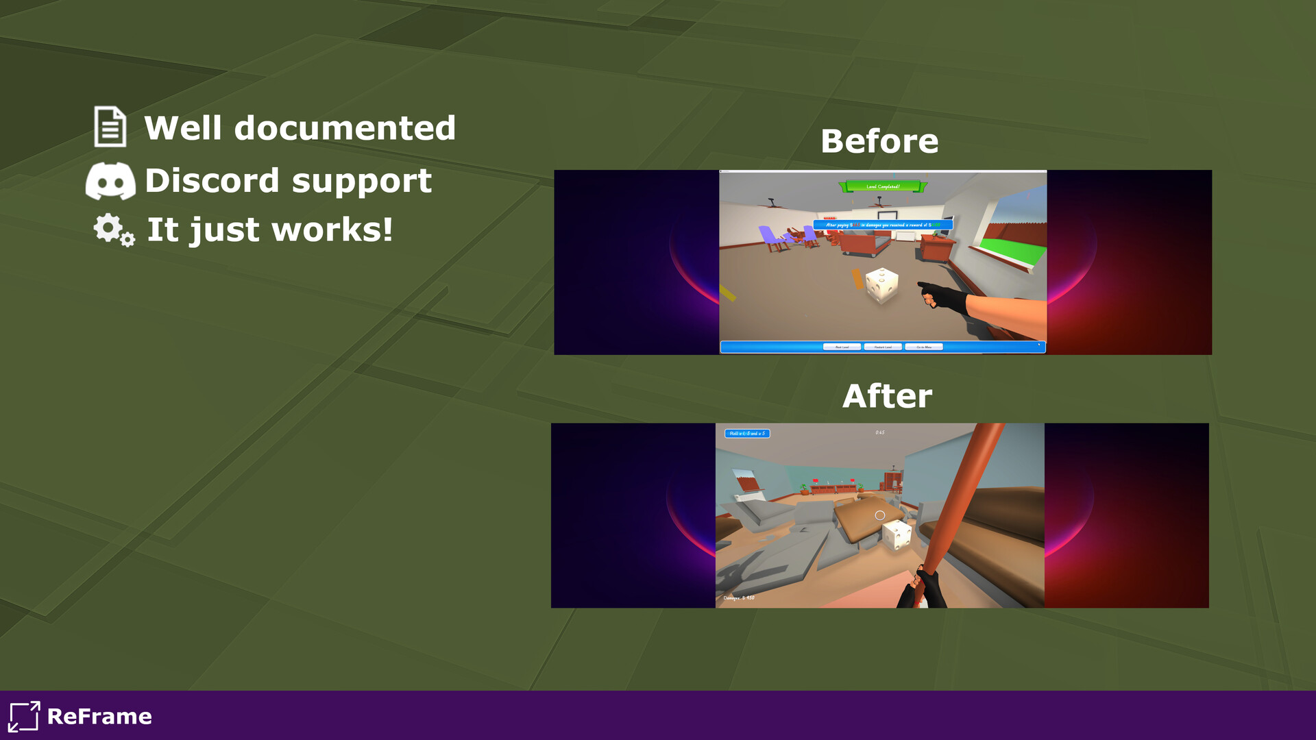 Fully documented - ReFrame is fully documented to help you get started. Feeling stuck after reading the documentation? Join the Discord for support!