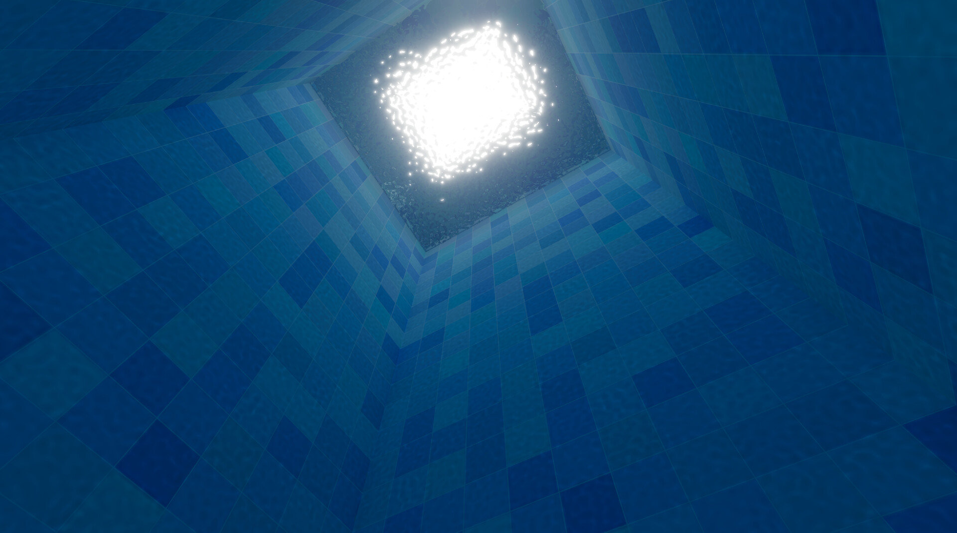 푸른 톤의 물, 타일, 임의적 공간(리미널 스페이스)