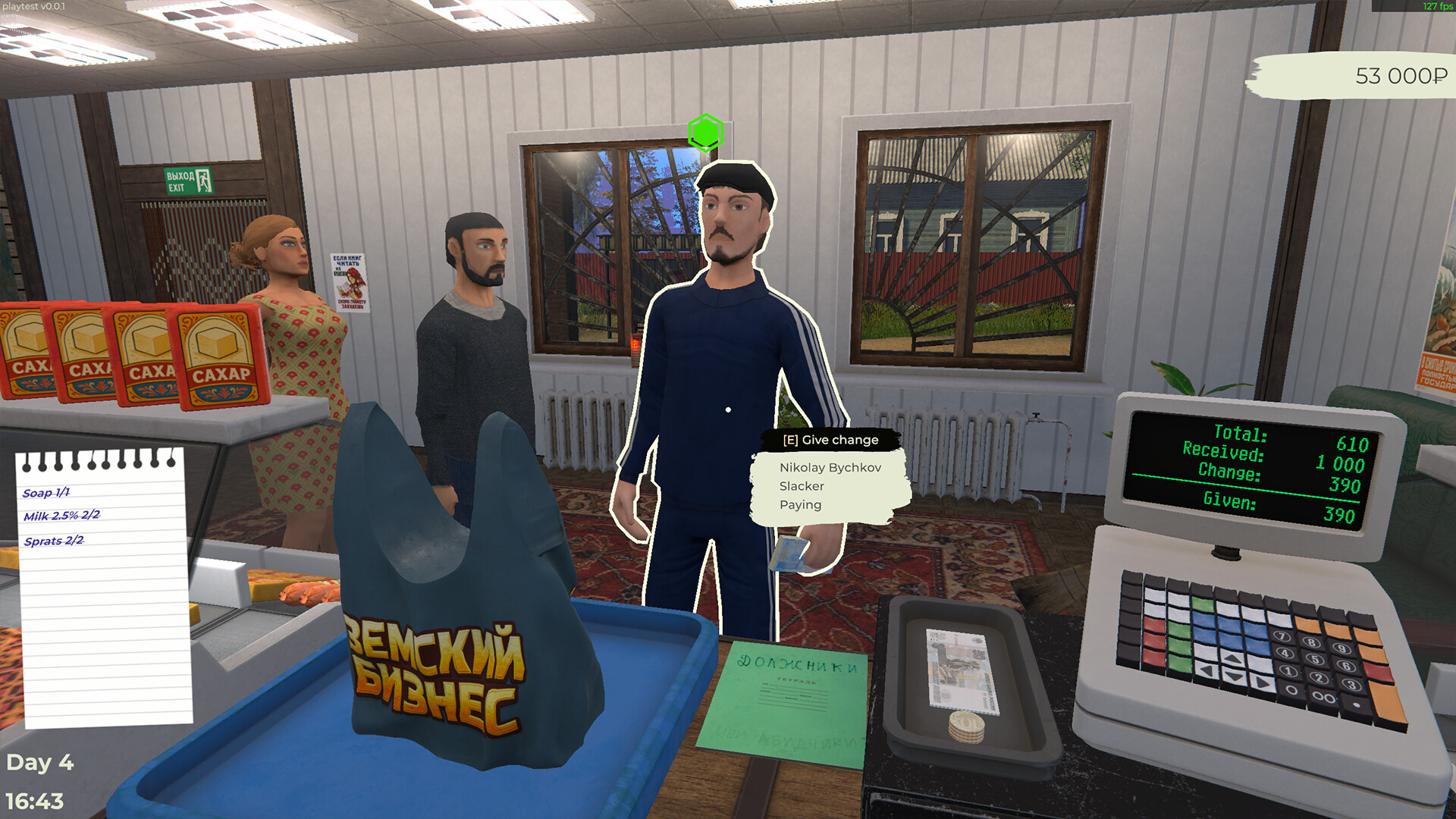 이 게임은 러시아 시골의 젊은 사업가 시뮬레이터입니다. 시골에 첫 가게를 열고 필요한 상품을 거래하며 지역 주민들의 삶을 개선하도록 돕고, 동시에 자신의 부도 키워보세요.