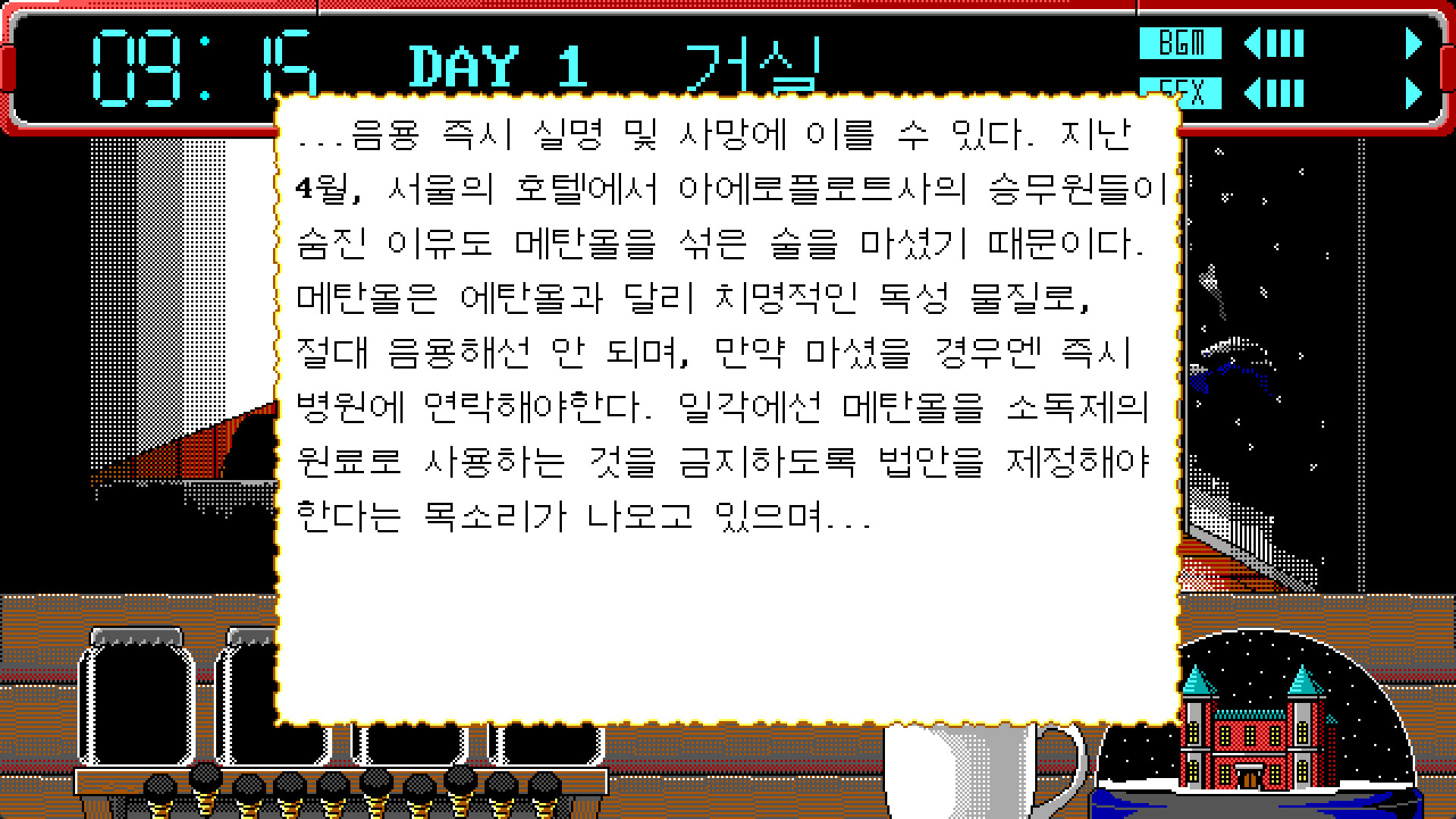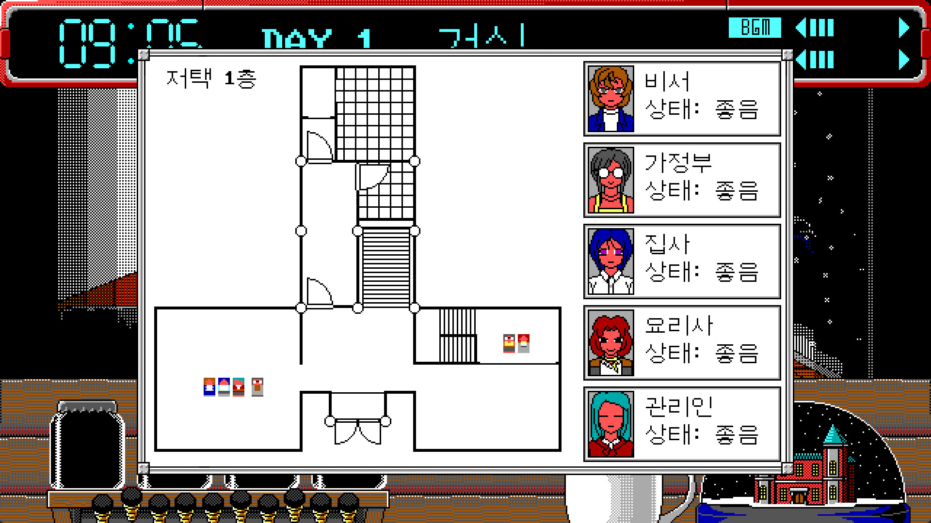 640 x 360 해상도, IBM 표준 16색만 사용한, EGA를 완벽히 재현한 그래픽
