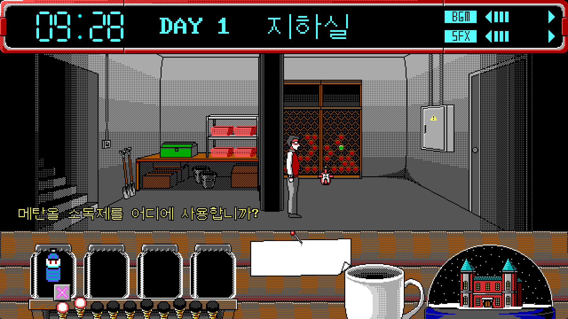 90년대 스타일의 포인트 앤 클릭 게임. 폭설, 고립, 8일, 사방이 적이다, 모두 죽여라.