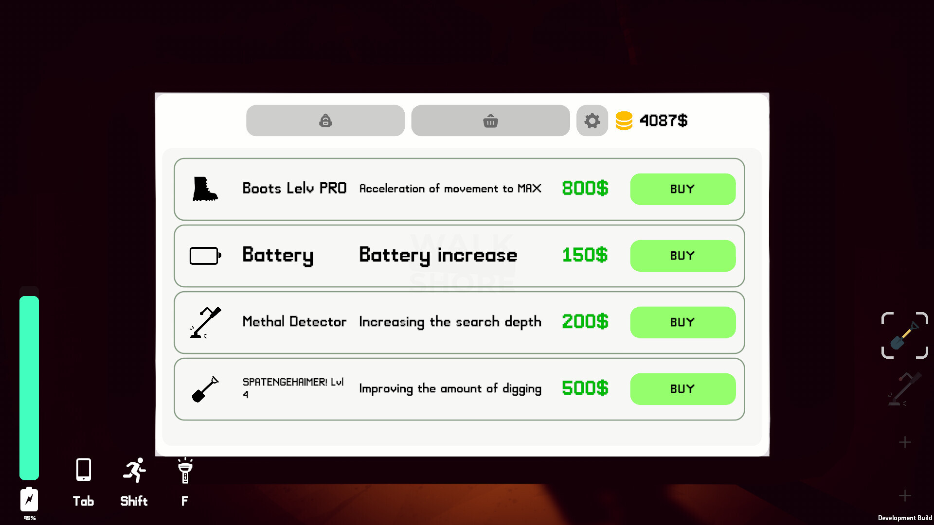Upgraded tools will help you find treasures in the sand more easily.