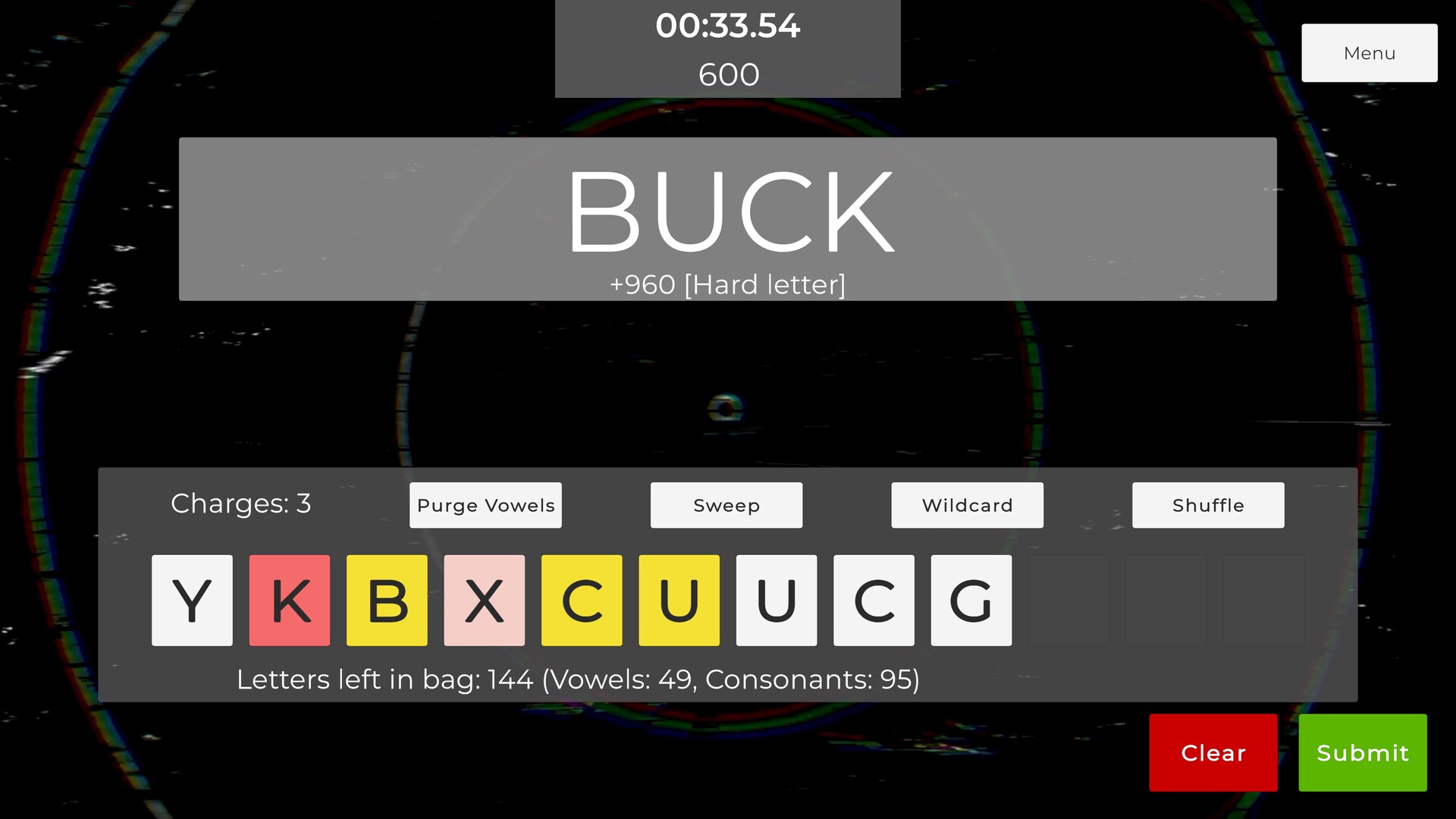 Power-Ups: Clear vowels, shift the rack, or throw in a wildcard to save yourself.