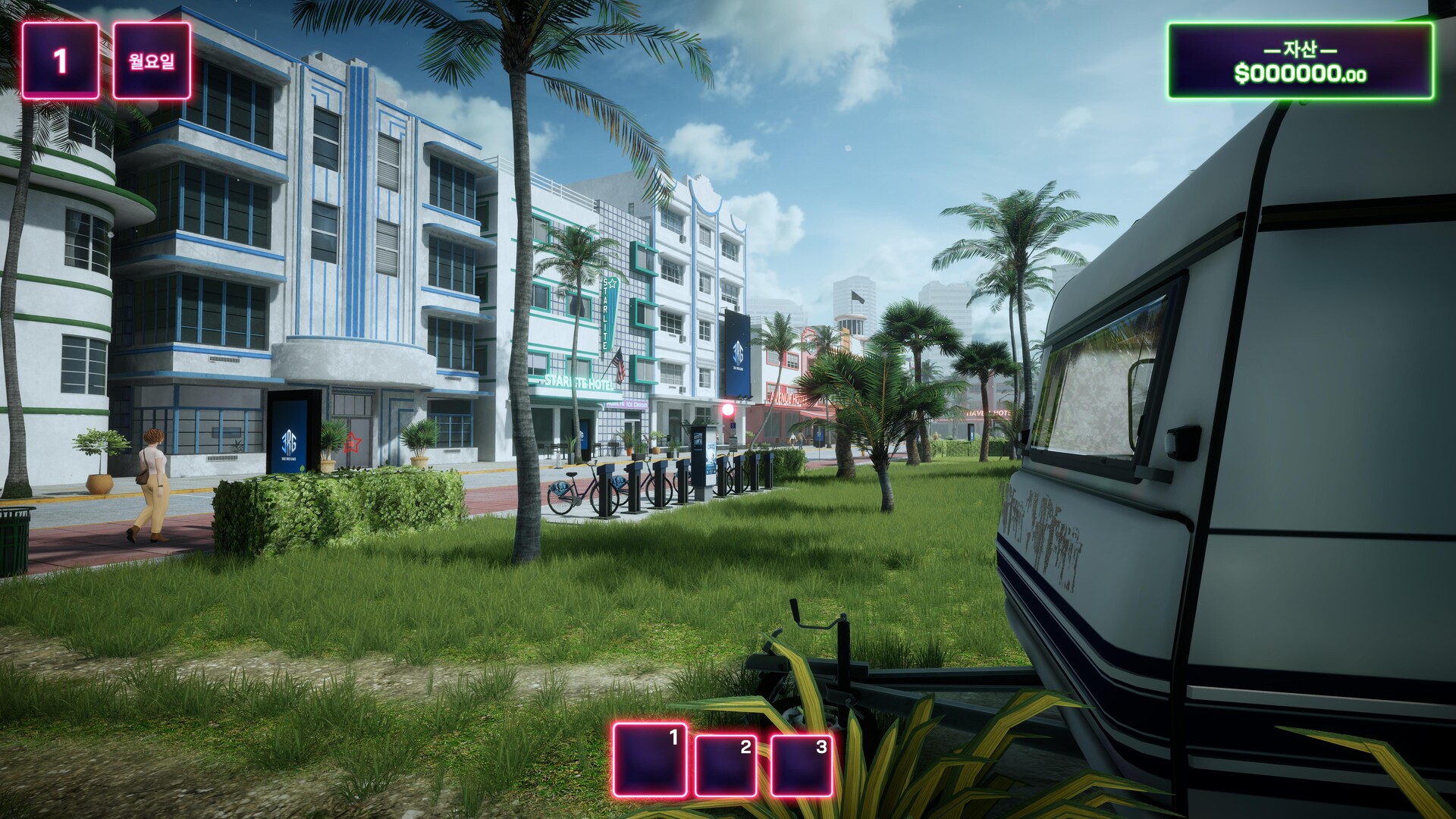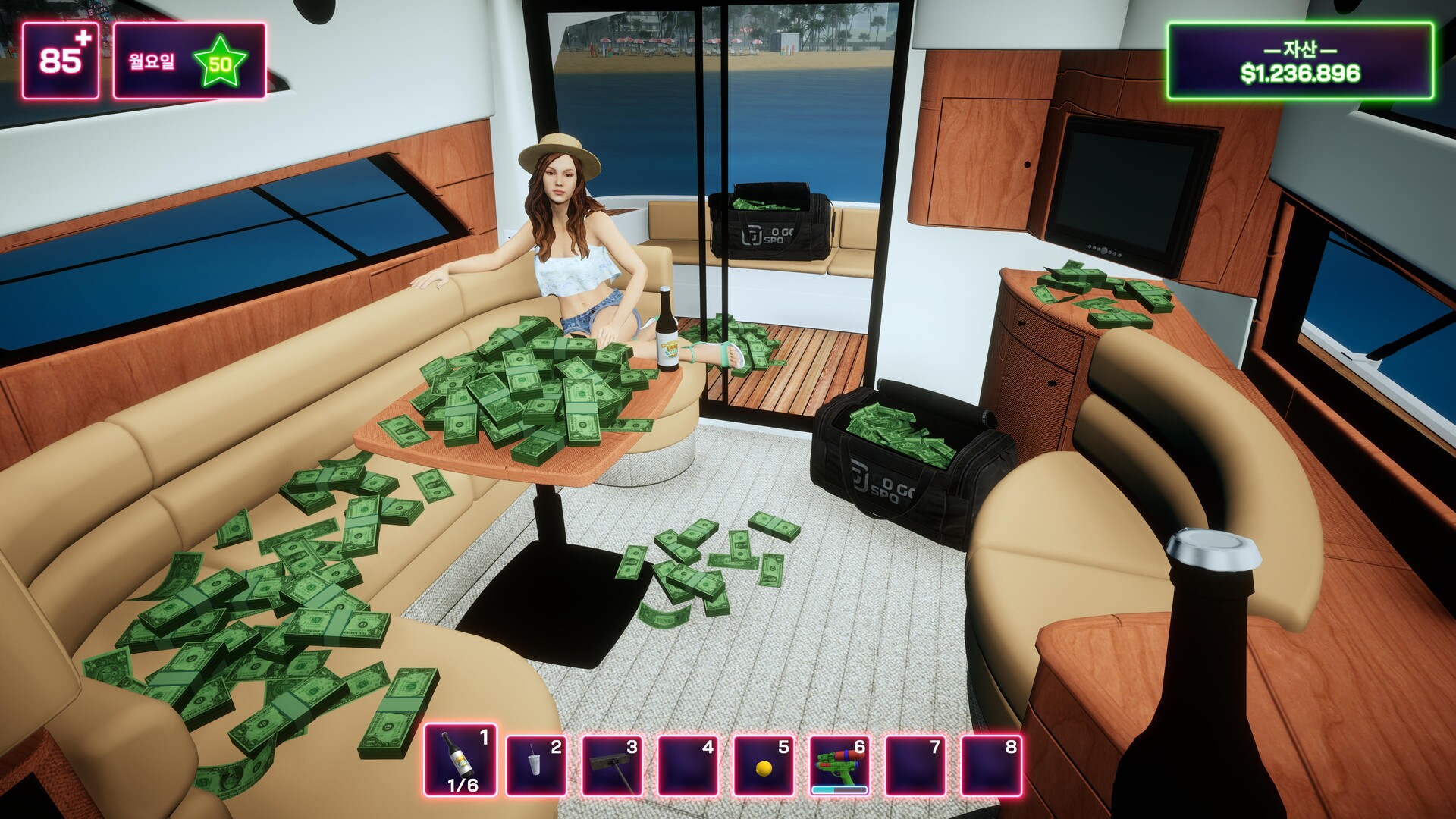 여기는 햇살이 보장되고, 돈이 해변 패션만큼 당연한 곳. 이 유쾌한 1인칭 시뮬레이션에서 마이애미 비치에서 시작해, 판매, 투자, 최적화, 그리고 현금이 쏟아지는 소리를 듣게 됩니다 – 결국 중요한 건 단 하나: Cash is King.