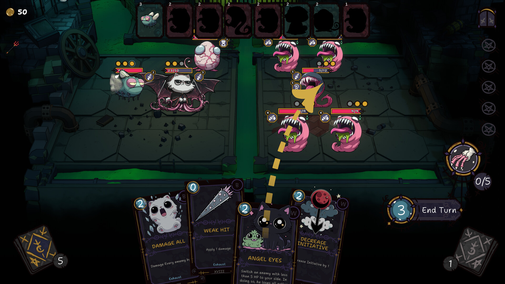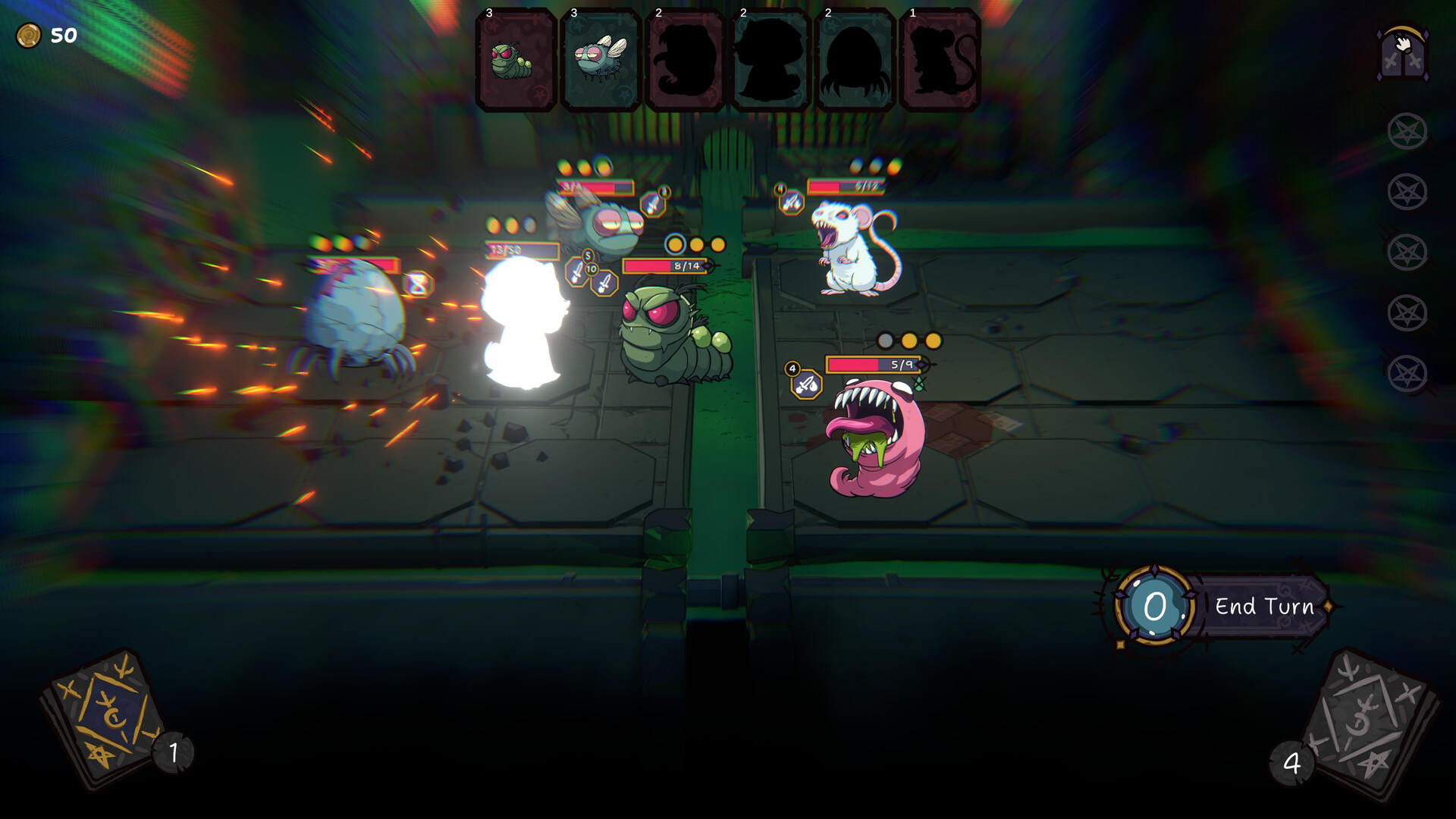 어둡고 사악한 로그라이크 덱빌더에서 사탄적인 고양이가 되어 지옥의 괴물로 변이하세요. 턴제 전술 전투에서 타락한 지옥 군단과 맞서 싸우고, 소름 끼치는 하수인을 소환하며 저주받은 타로 덱을 완성하세요. 변이하라… 아니면 죽어라.