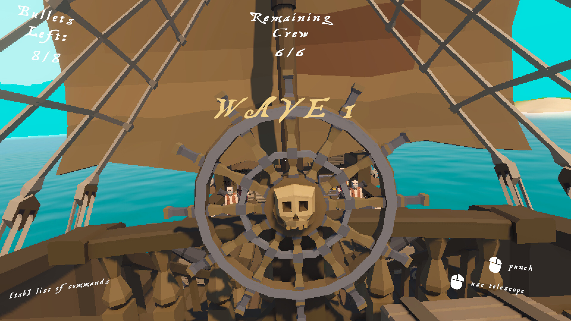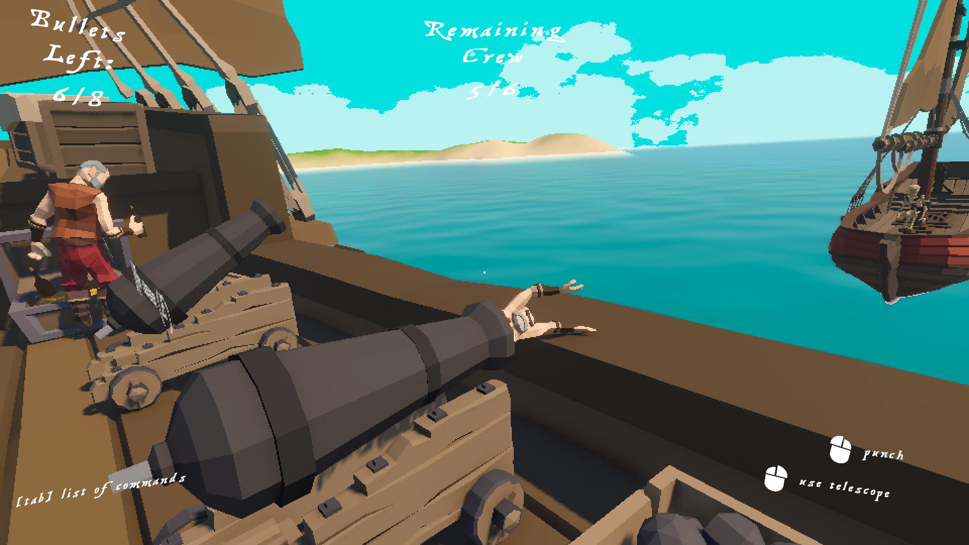 the game features a singleplayer PVE mode where you try to survive as much as you can and a multiplayer PVP up to 4 player free-for-all battle royale where each player has its own ship and crew to command.
