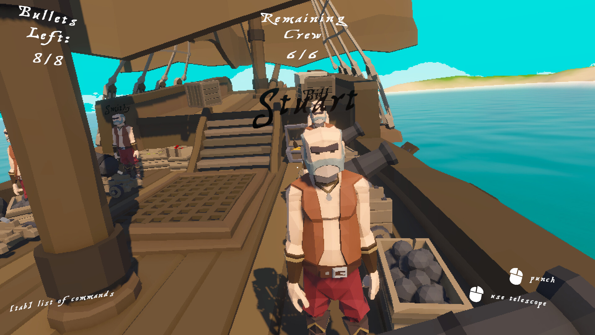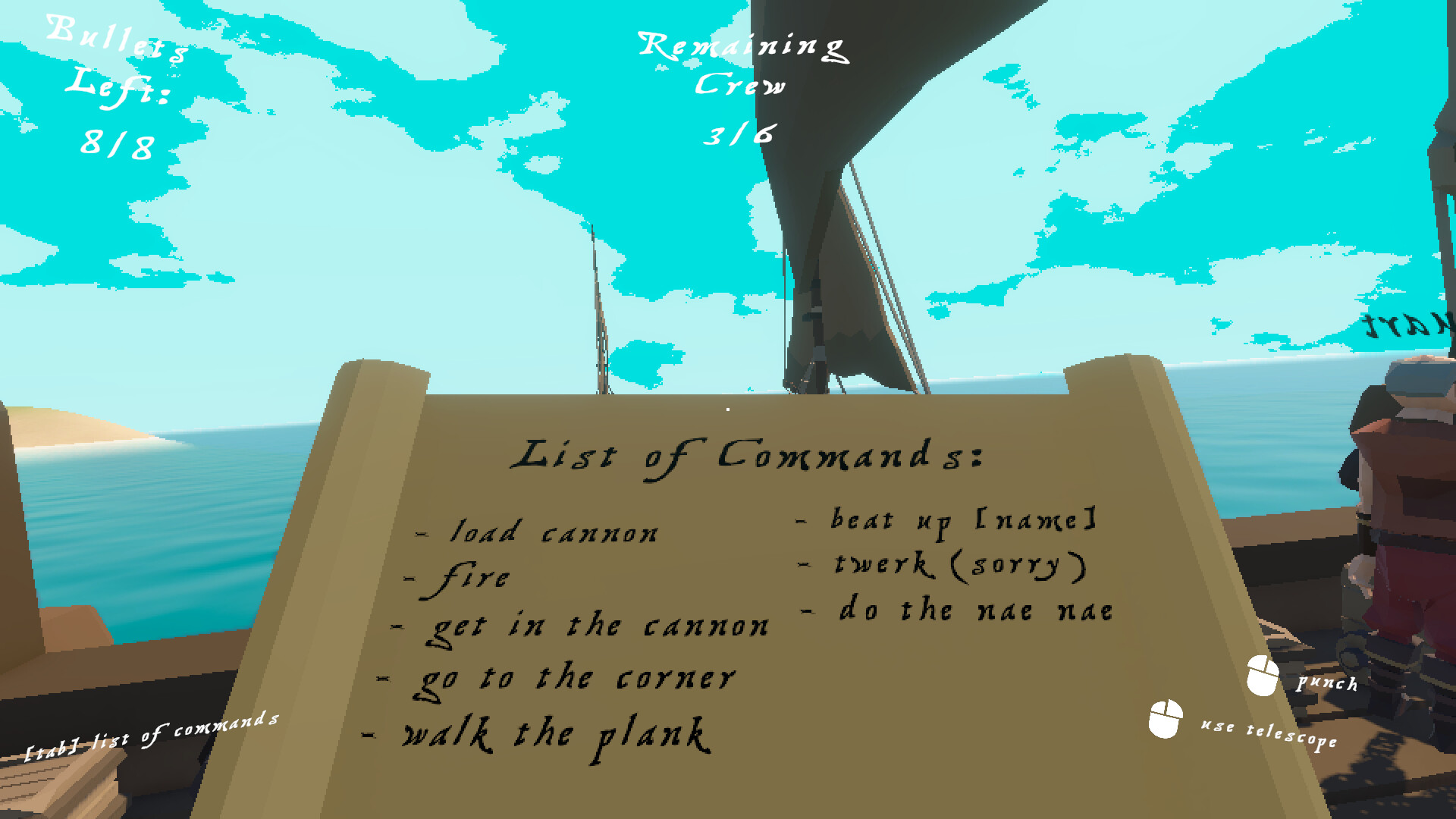 Once you’ve called their names, your crew members wait for your next words. Want to make Bob walk the plank and jump to his death with the kraken? or have Smithy punch Joe in the face?, the choice is yours, Captain.