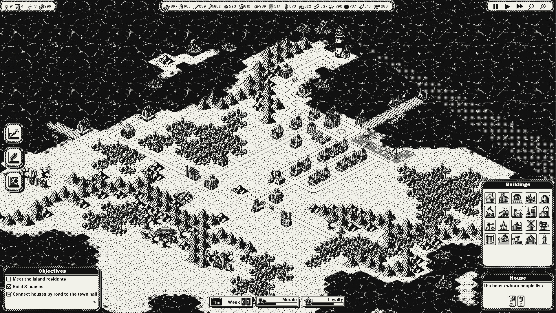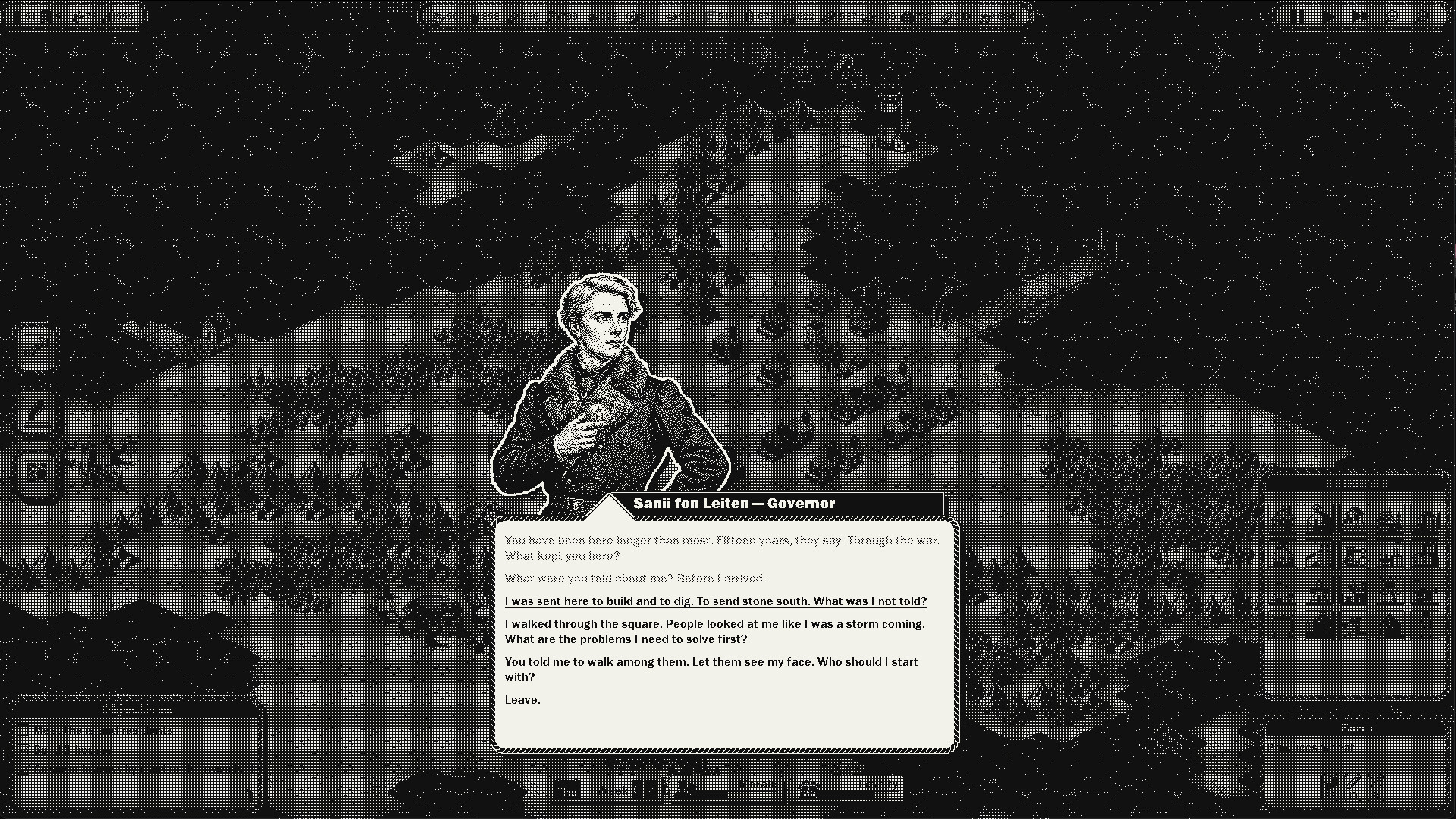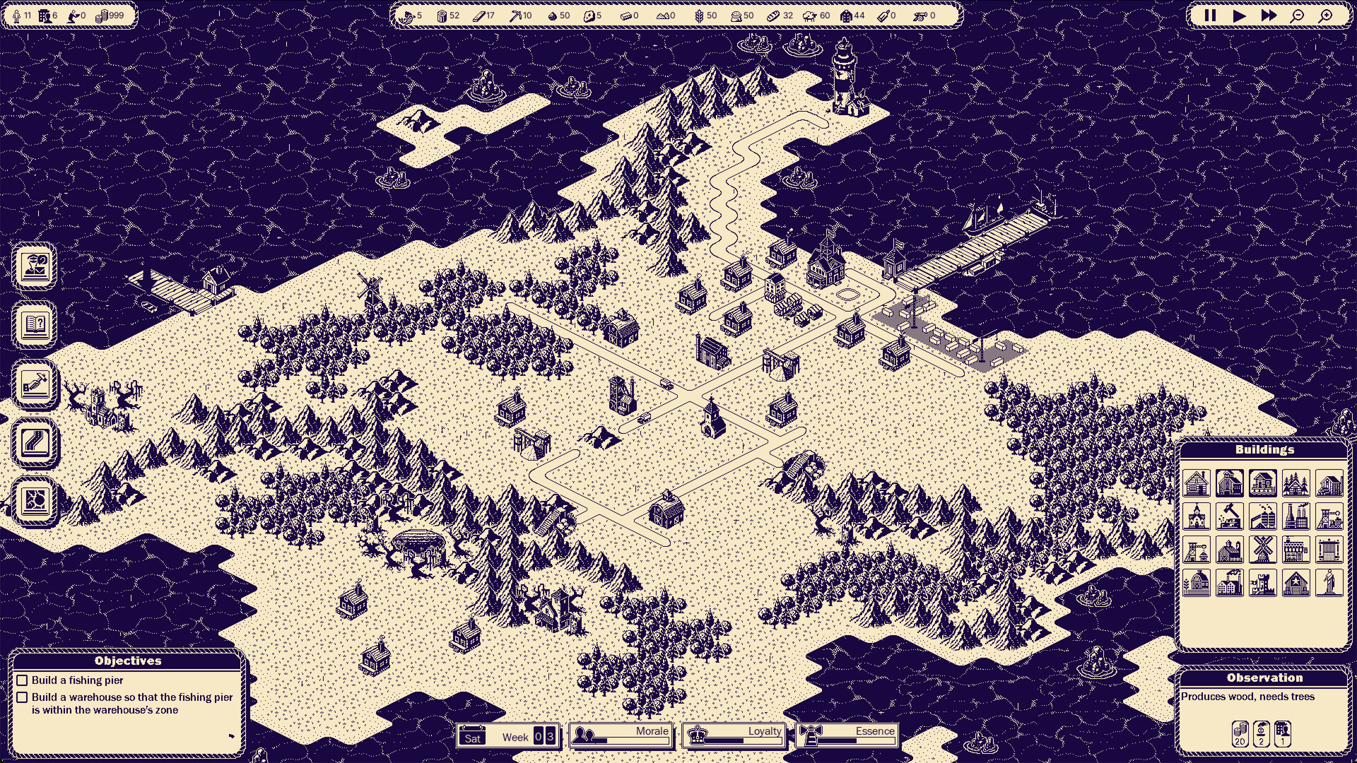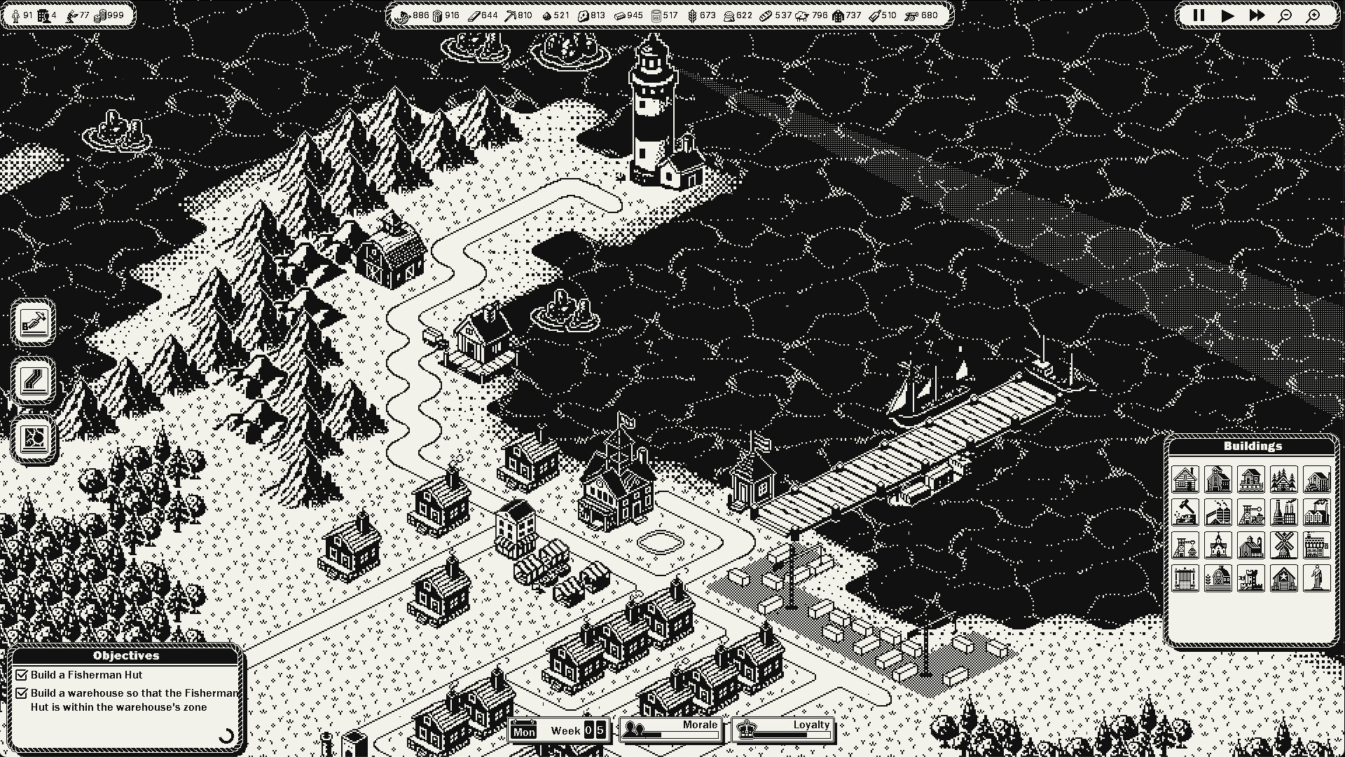 A 1-bit story-driven city-builder on a remote northern island between warring nations. Rebuild a struggling settlement and uncover the mystery at its heart.