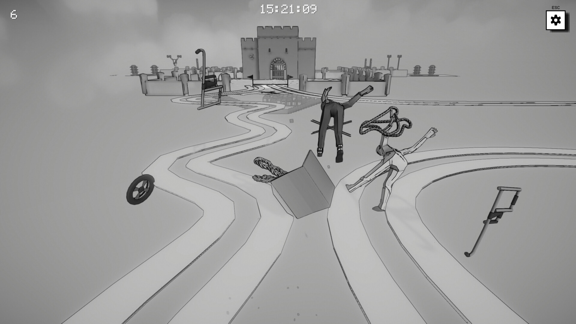 Momentum, friction, and collisions dictate how the wheelchair moves. Mastering balance and timing is the only way to survive.