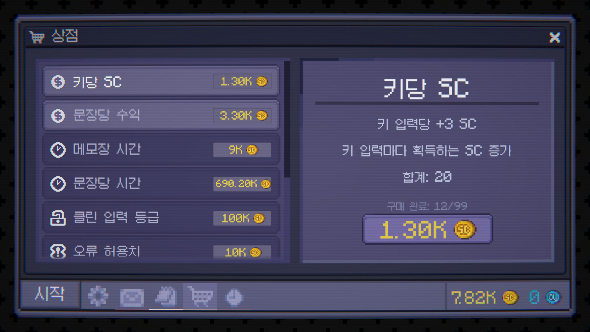 Keycler는 타이핑 기반 증분 게임입니다. 쉬지 않고 입력하고, 효율을 쌓고, 생산을 자동화하고, 프레스티지로 시스템을 더 강하게 밀어붙이세요.