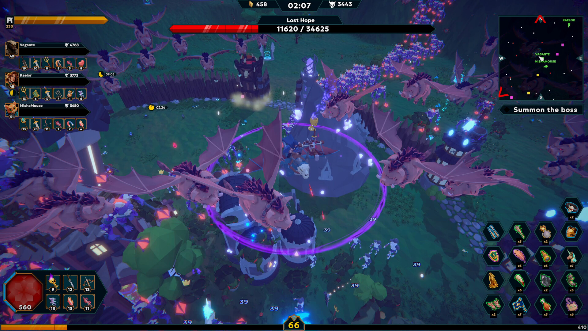 시뉴스 아레나는 메가봉크의 정신을 계승하여 강렬한 협동 플레이와 타워 디펜스를 결합했습니다. 매 순간이 중요한 초고속 총알 천국 서바이벌 게임입니다. 끝없는 적의 물결을 물리치고, 영웅을 강화하며, 요새를 건설하세요. 모든 것이 실시간으로 진행됩니다. 솔로든 협동이든, 당신은 요새의 최후 방어선이다.