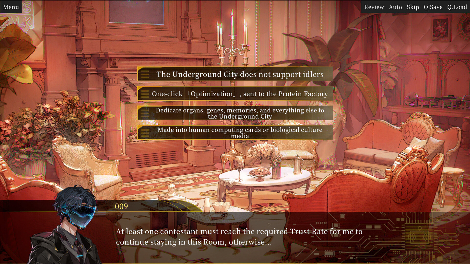 Each time you complete a round of Illusory Realm missions and return to your room, the System will conduct a Trust Rating for you and other contestants. You must gain enough Trust Rate from your partners in the Illusory Realm to avoid being eliminated – sent by the System to the Protein Factory.