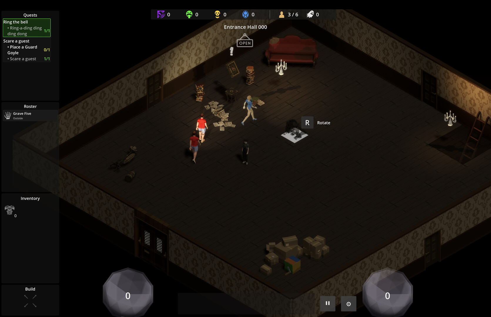 Build out your haunted house room by room. Place scare abilities, assign undertakers, and orchestrate the guest experience from an isometric view. Every room is a system. Every system can go wrong.