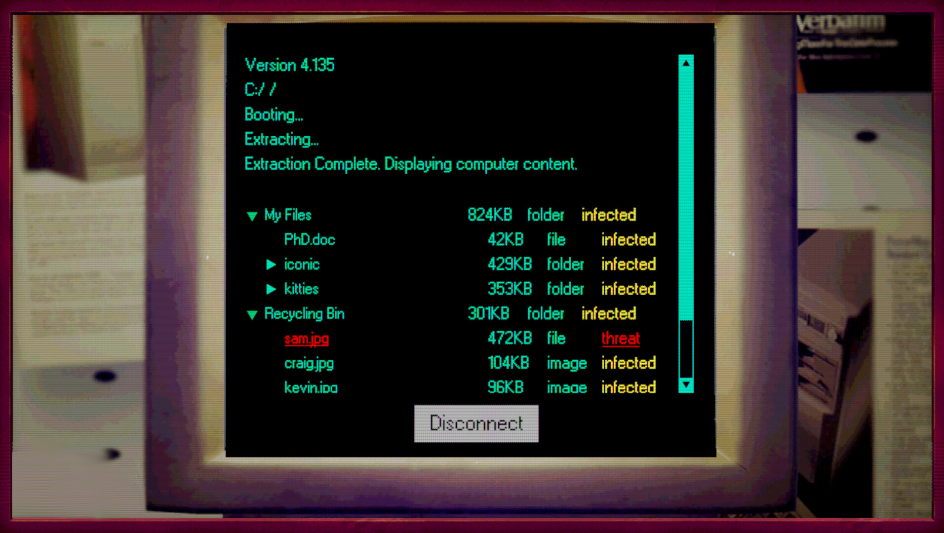I don't mind fixing computers, but customers are such a drag? I guess sometimes there’s cute guys to keep things interesting, like this guy from yesterday? Kinda cringy, but cute - and his COMPUTER. I don’t know why those files are broken like that, but something freaky's going on.