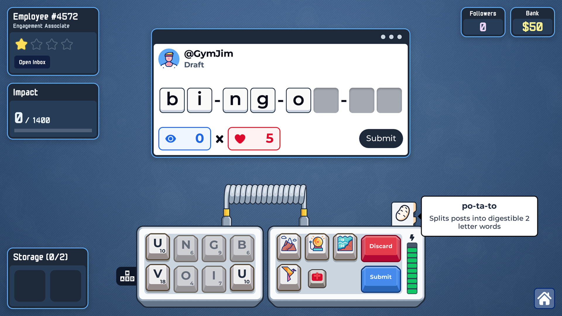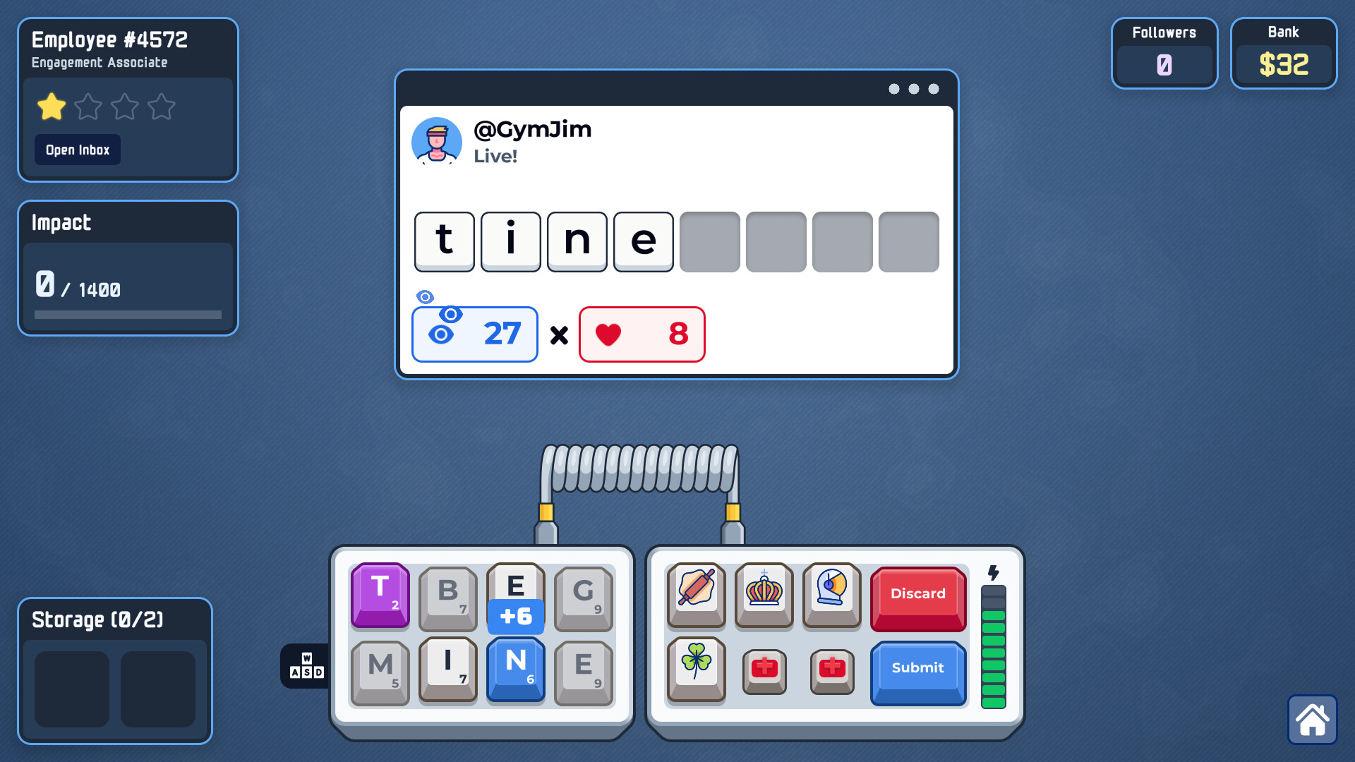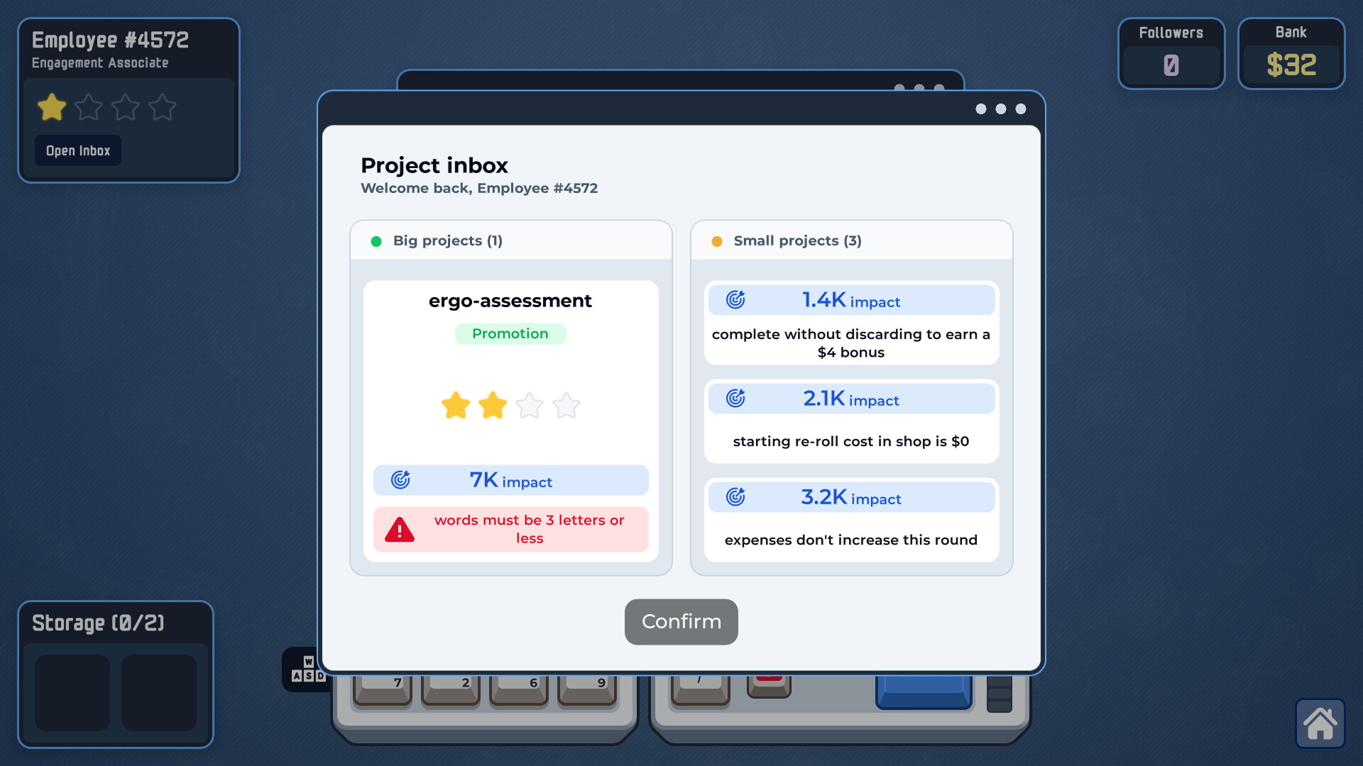 Deck out your keyboard with powerful upgrades in this roguelike word-builder. Snap on keycaps to buff entire rows or columns, install "broken" function keys, and pick your projects as you rise from a lowly intern to a corporate legend.
