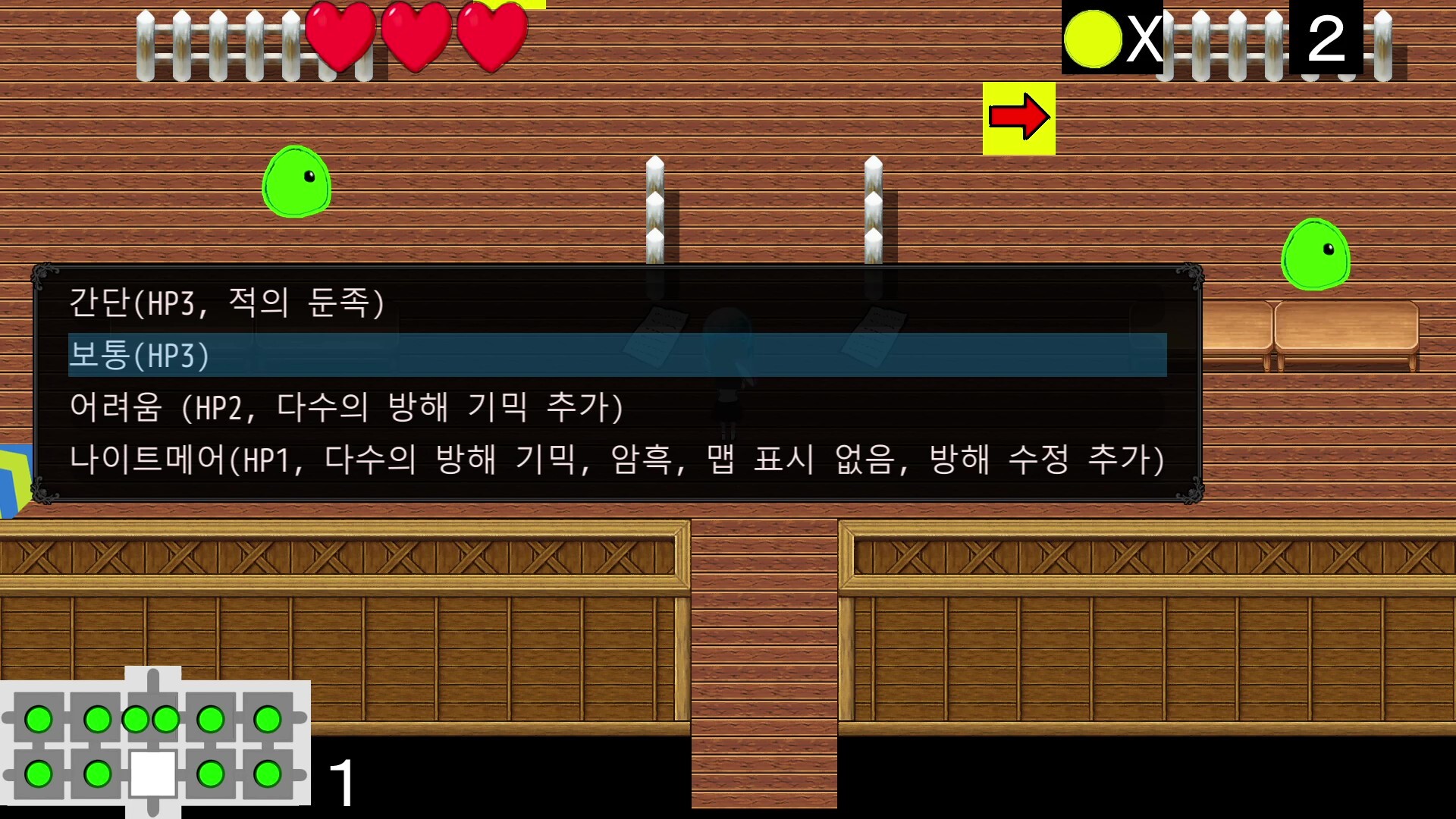 ・쉬움 (HP3, 붉은 도깨비와 몬스터의 이동 속도가 느림)
