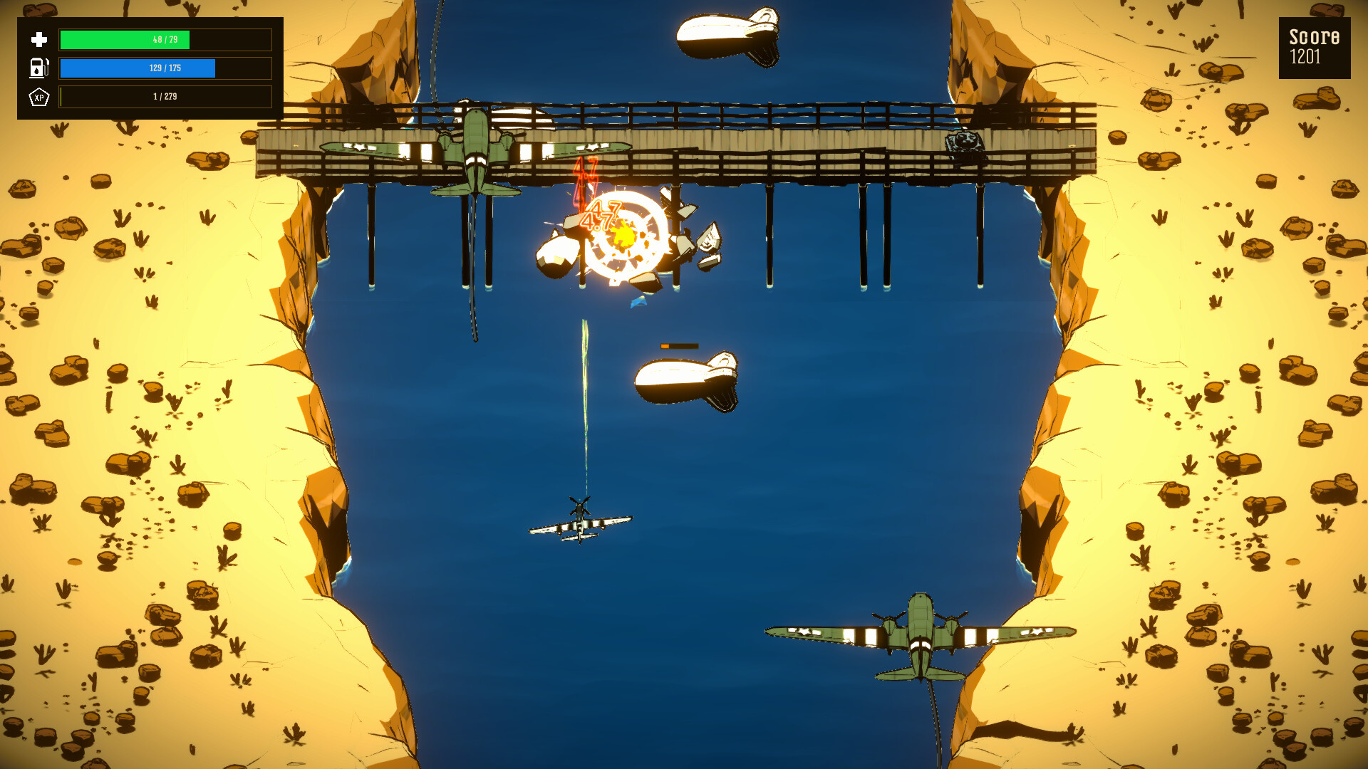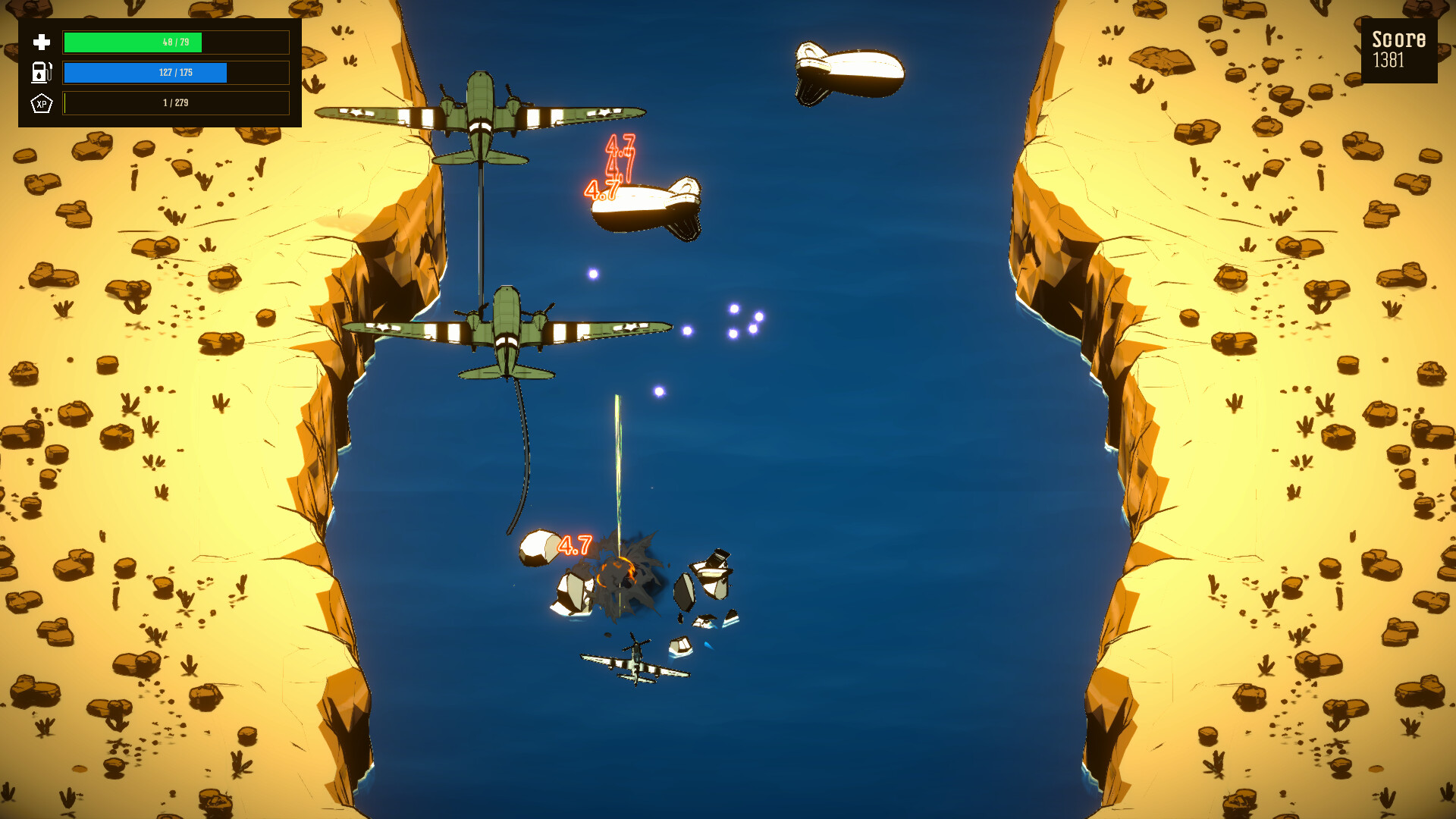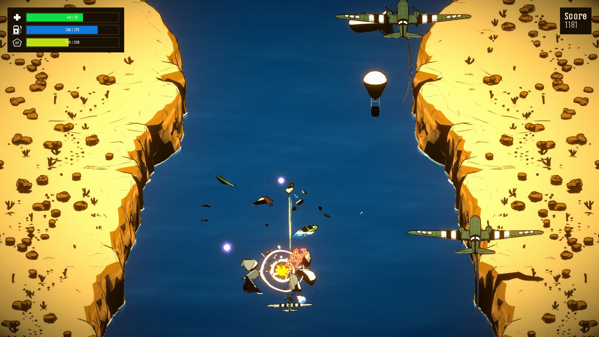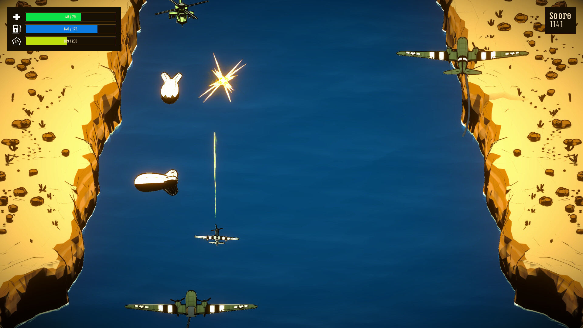 Remember River Raid? Canyon Raid is a modern recration of the 1982 classic into vibrant 3D with roguelike mechanics. Fly your aircraft through procedurally generated canyons, destroy ships and enemy planes, evade incoming fire, and demolish bridges blocking your path—all rendered in a beautiful low-poly art style.