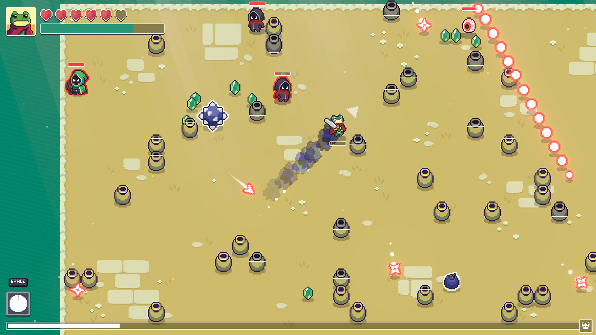 Loot Frog 은 항아리를 부수고 보석을 수집하며 사악한 집단과 맞서 싸우는 인크리멘탈 액션 불릿 헬 게임입니다.