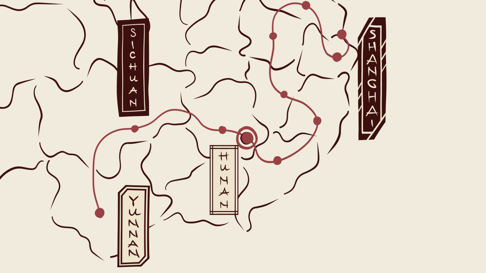 You play as a courier delivering tea from a small village in Yunnan Province to Shanghai. Along the way, you visit provinces and collect different varieties of tea. Each province is represented by a shelf with a matchmaking puzzle.