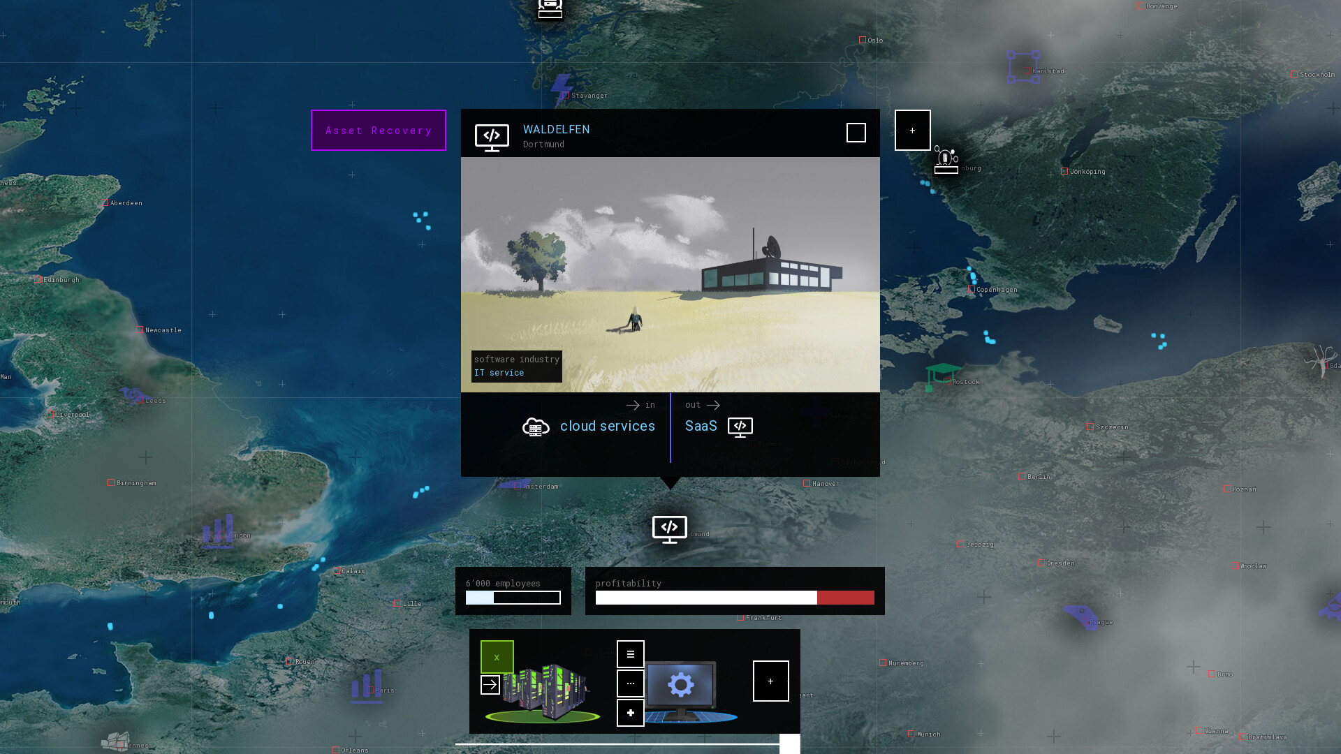 Recruit up to 16 unique characters into your company that you can level up and equip individually. Send them on business-trips all over Europe to acquire other companies or complete corporate espionage missions.