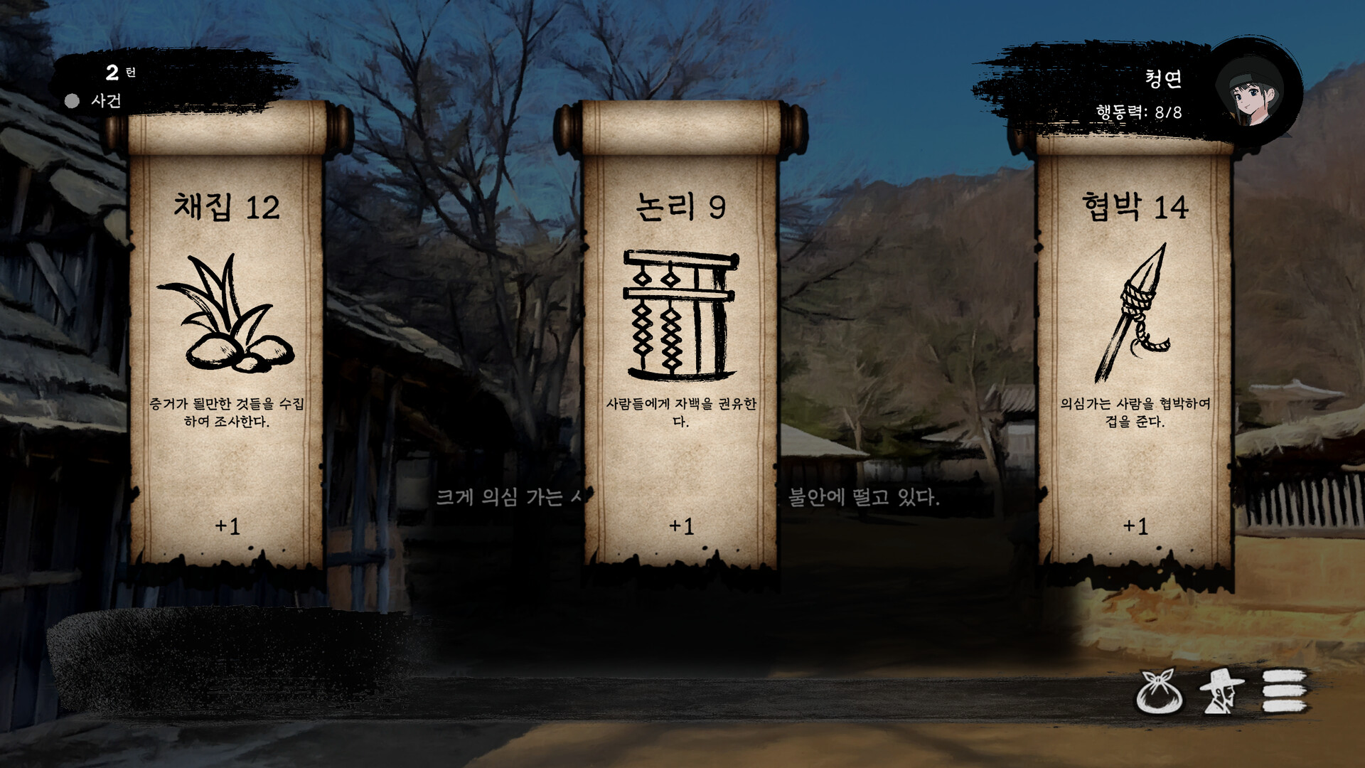 여명촌은 조선시대 대기근 속에서 동료를 배치하고, 자원을 관리하며, 선택의 결과를 감당하는 생존 전략 게임입니다.