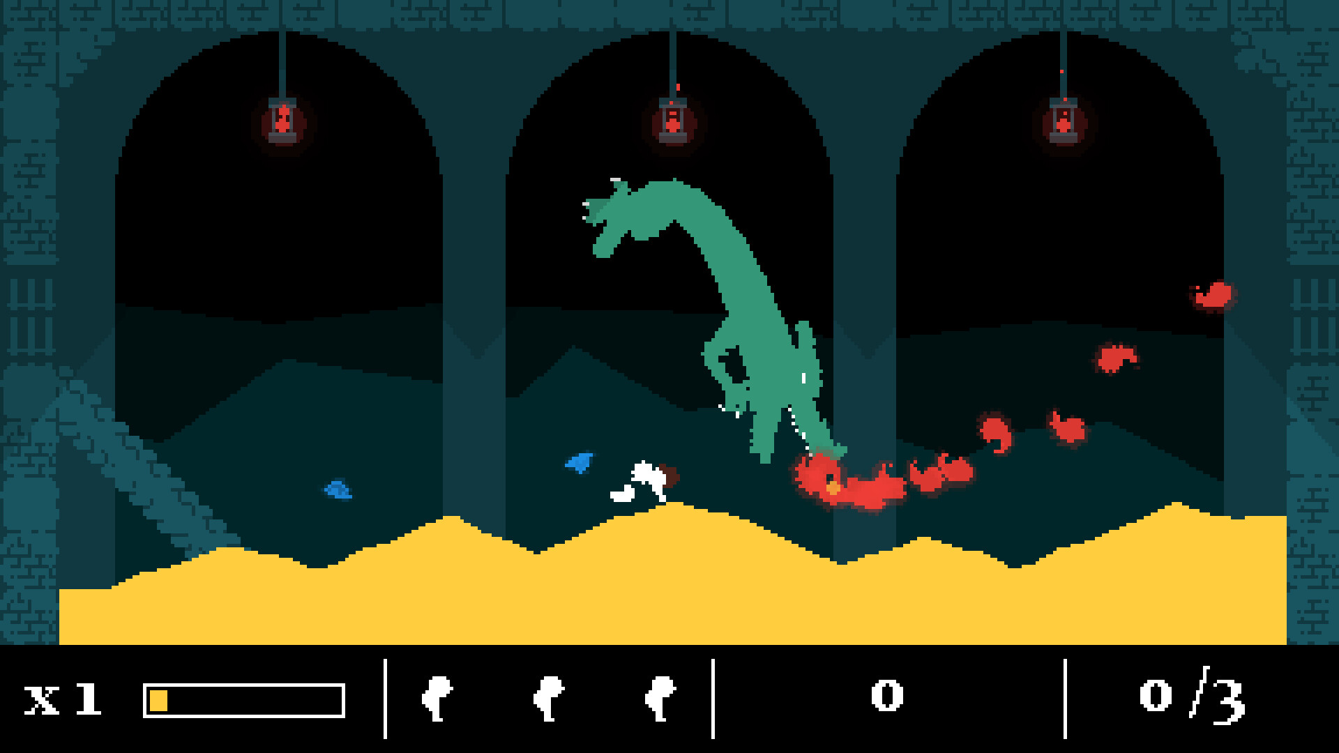 Run across a broken wooden bridge while avoiding falling bricks to make it to the dragon's lair. once inside, your goal is to confiscate as many valuables as possible, while evading the dragon's attacks. One hit to your player and all your valuables are sent flying back to the dragon's gold pile. Stay too long and the dragon might become too much to deal with. Jump, slide, and dive towards valuables to reach the quota to open the exit gate and return to the bridge.