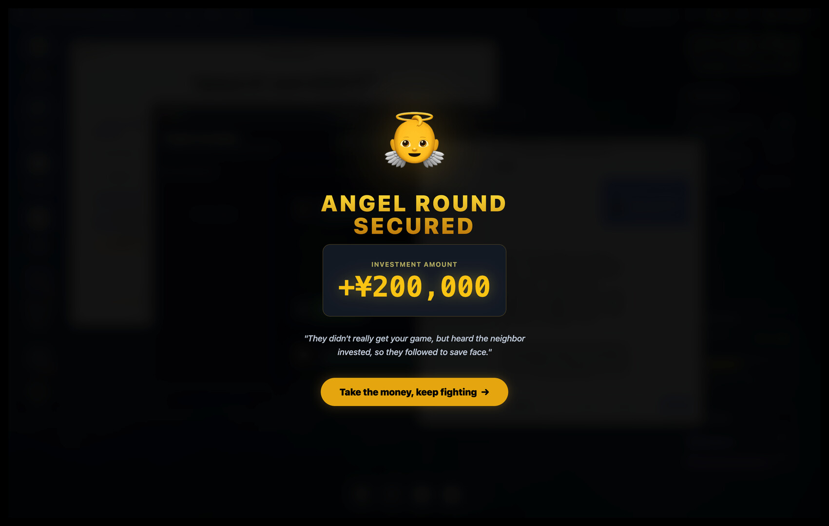 "Listen, the situation is bad." You are the Lead (and only) Designer at an indie game studio. Your last game, Cyber-Pig Simulator, was a commercial disaster. The investors took the money and ran overnight, and the company account only has enough cash for two more weeks of instant coffee. The Boss just snapped. He demands an MVP (Minimum Viable Product) by tomorrow to conโerr, pitchโthe last remaining Angel Investor. As the studio's last hope, you have 24 hours to stitch together a viral hit from a pile of cyber-trash and trending keywords.