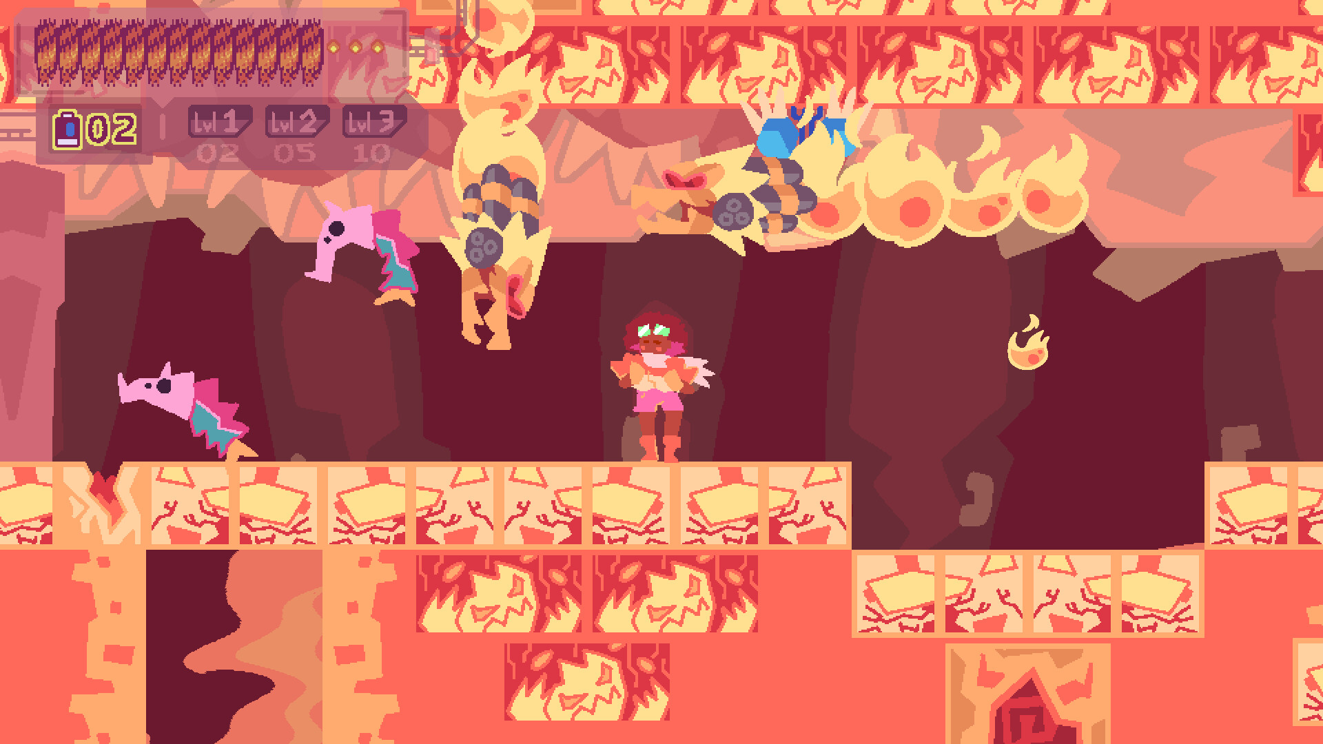 7 Levels across sandy dunes, misty caves, flooded ruins, and burning mountains