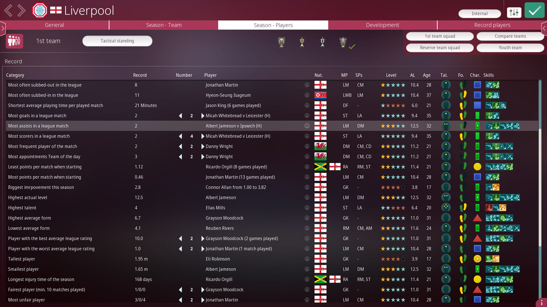 · Expanded club profile “Season – Players” with around 40 statistical categories for all clubs