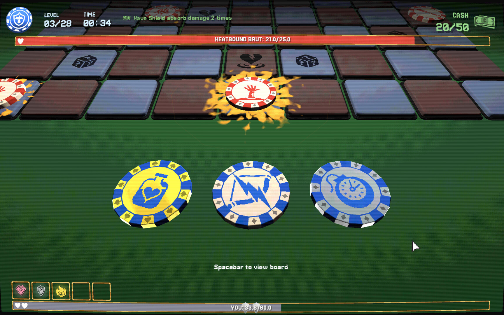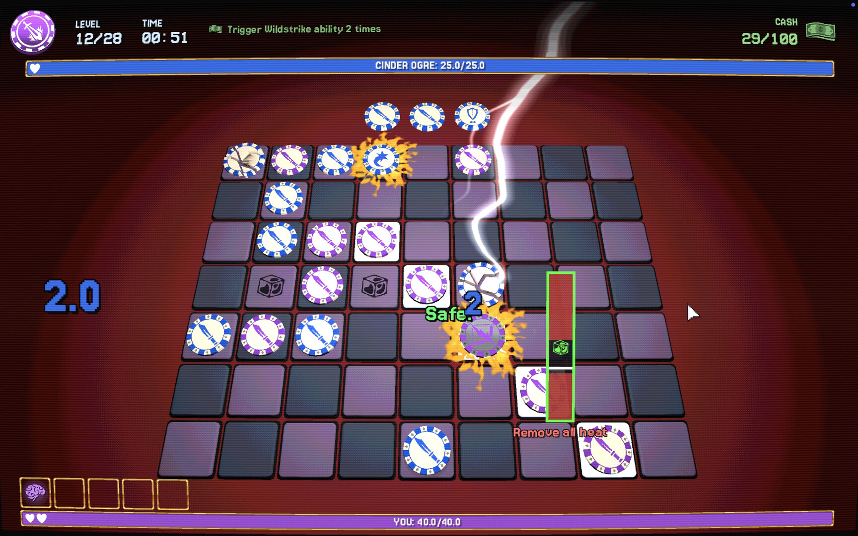 Board modifiers introduce traps, constraints, and a high-risk timing minigame.