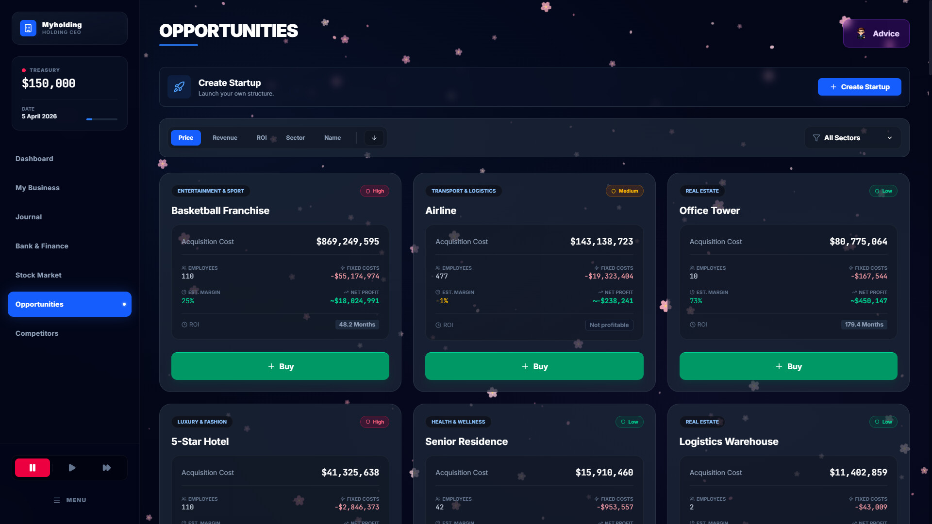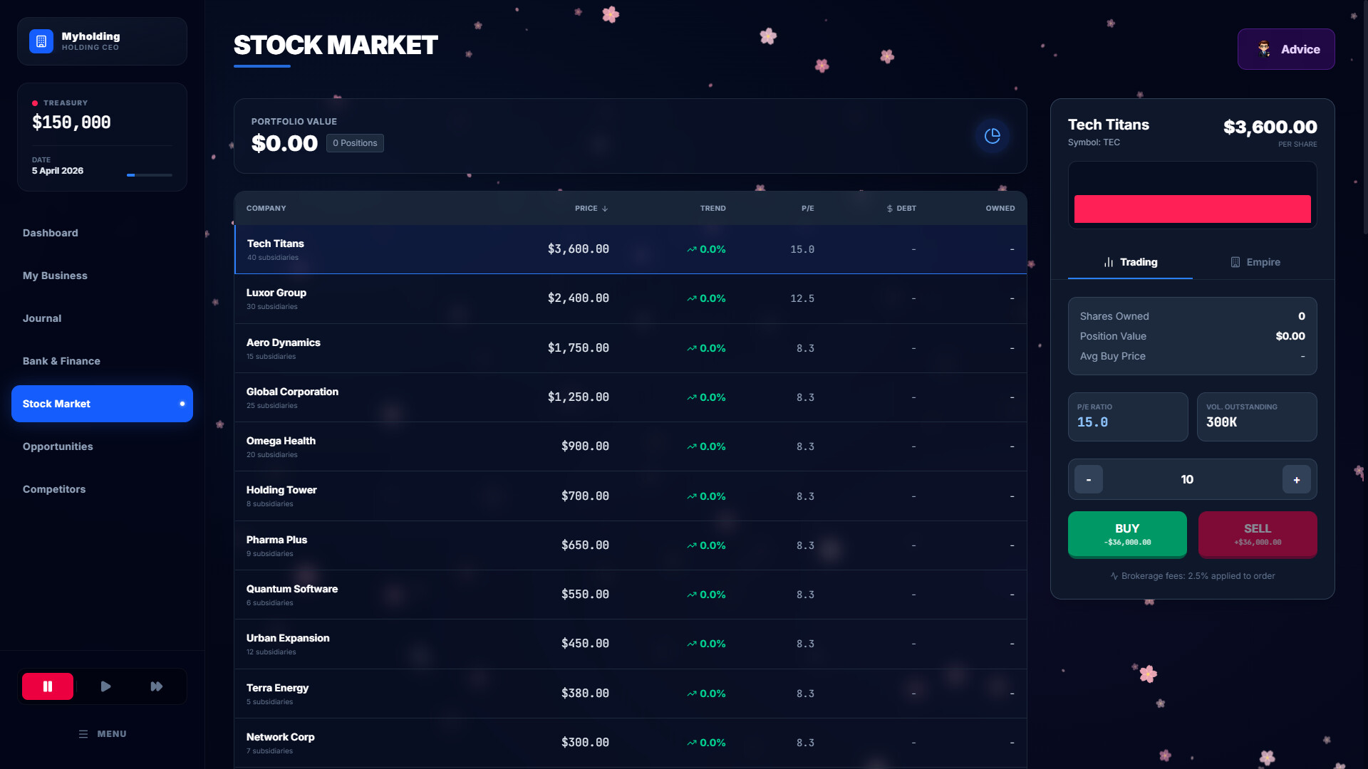 세계적인 비즈니스 거물이 게임은 몰입감 넘치는 전략 경영 시뮬레이터로, 플레이어는 글로벌 비즈니스 제국을 건설하고 운영하게 됩니다. 강력한 지주 회사의 CEO로서, 당신이 내리는 모든 결정은 당신의 재정적 유산을 좌우하게 됩니다.