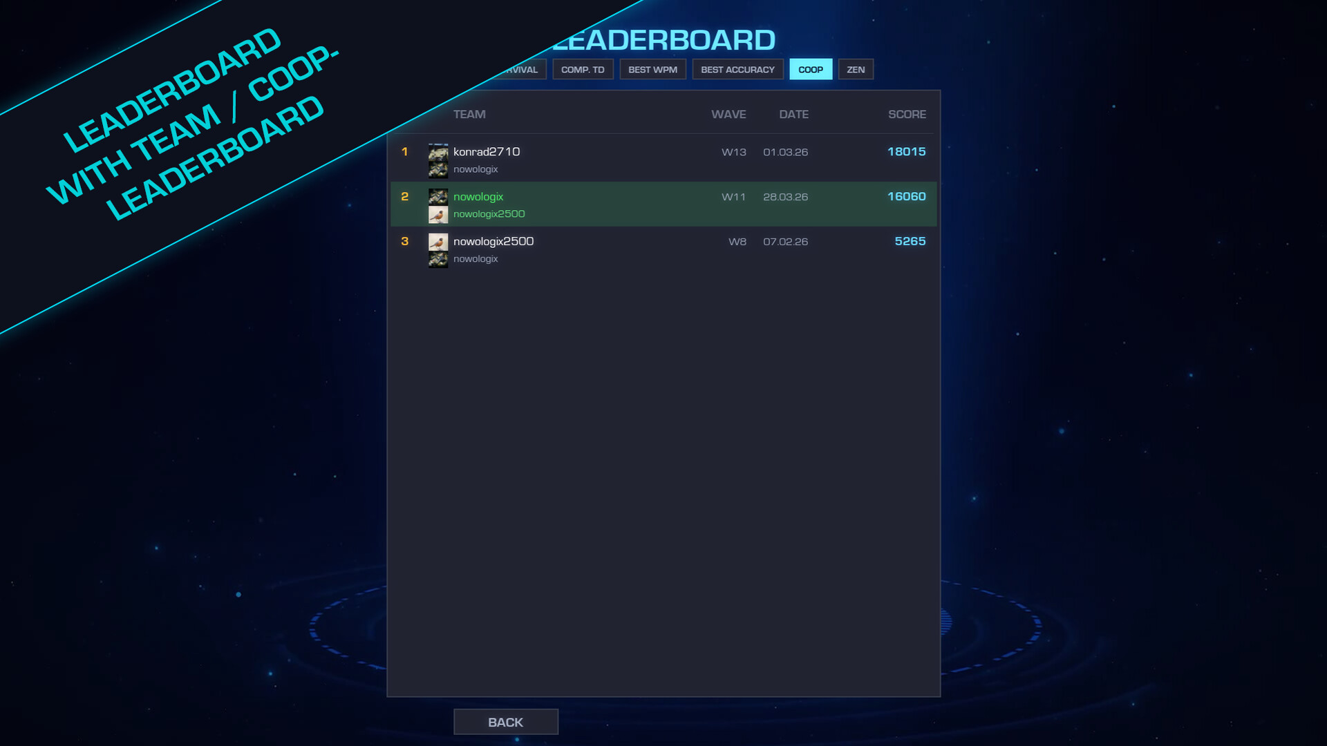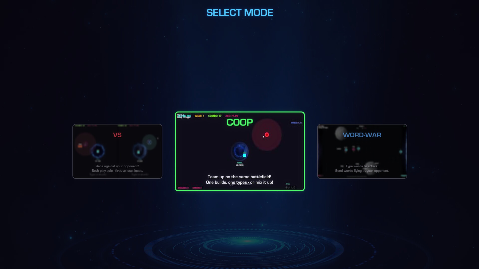 Typer3000 is a fast-paced SOLO, VS & COOP typing action shooter where every keystroke counts: type words to destroy enemies, build defences and master strategic challenges.