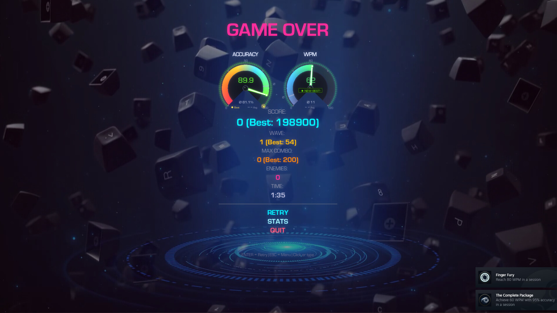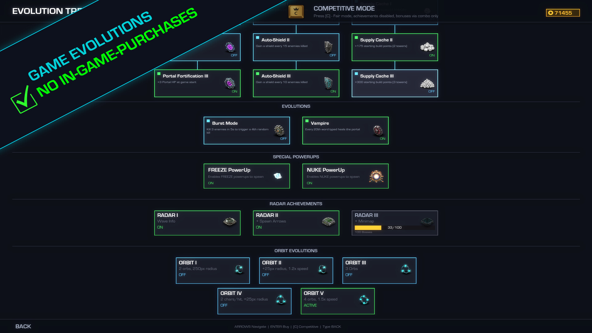 Master survival waves or defend the portal in tower defence mode. Performance is also accurately tracked: KPW, WPM, ACCURACY, PROGRESS and a lot more.