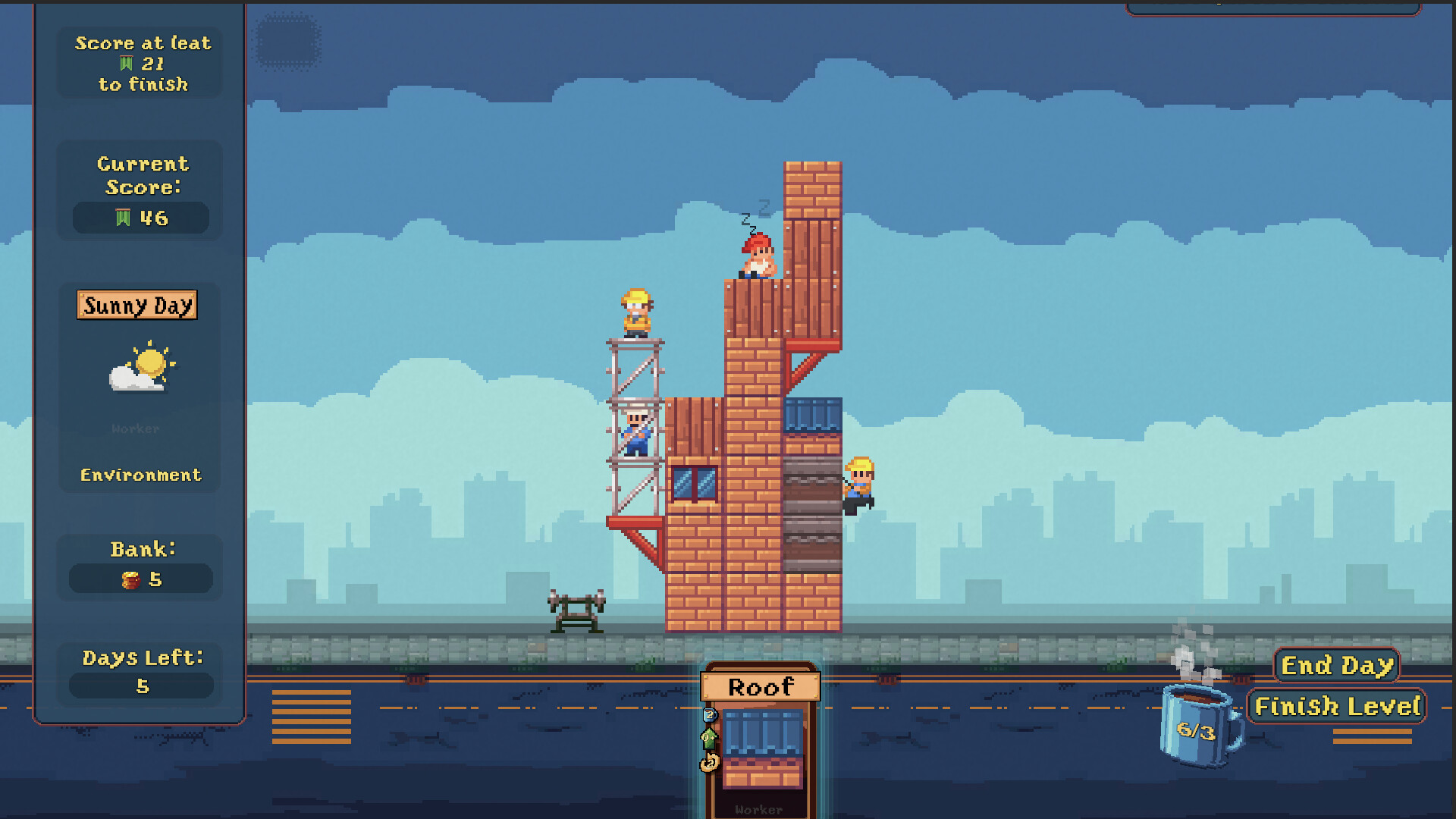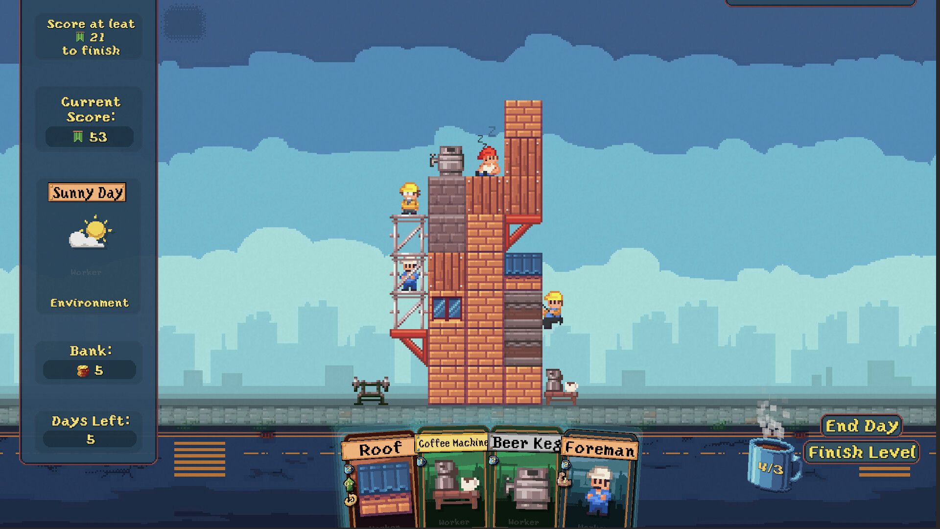Did you sell your soul to pass your architecture finals? Then there is only one solution: Become Starchitect, the most powerful architect of all times. Drink coffee, upgrade your workers, place completely reasonable things like beer kegs and weight benches on-site, and find sweet synergies to let your rating points explode.