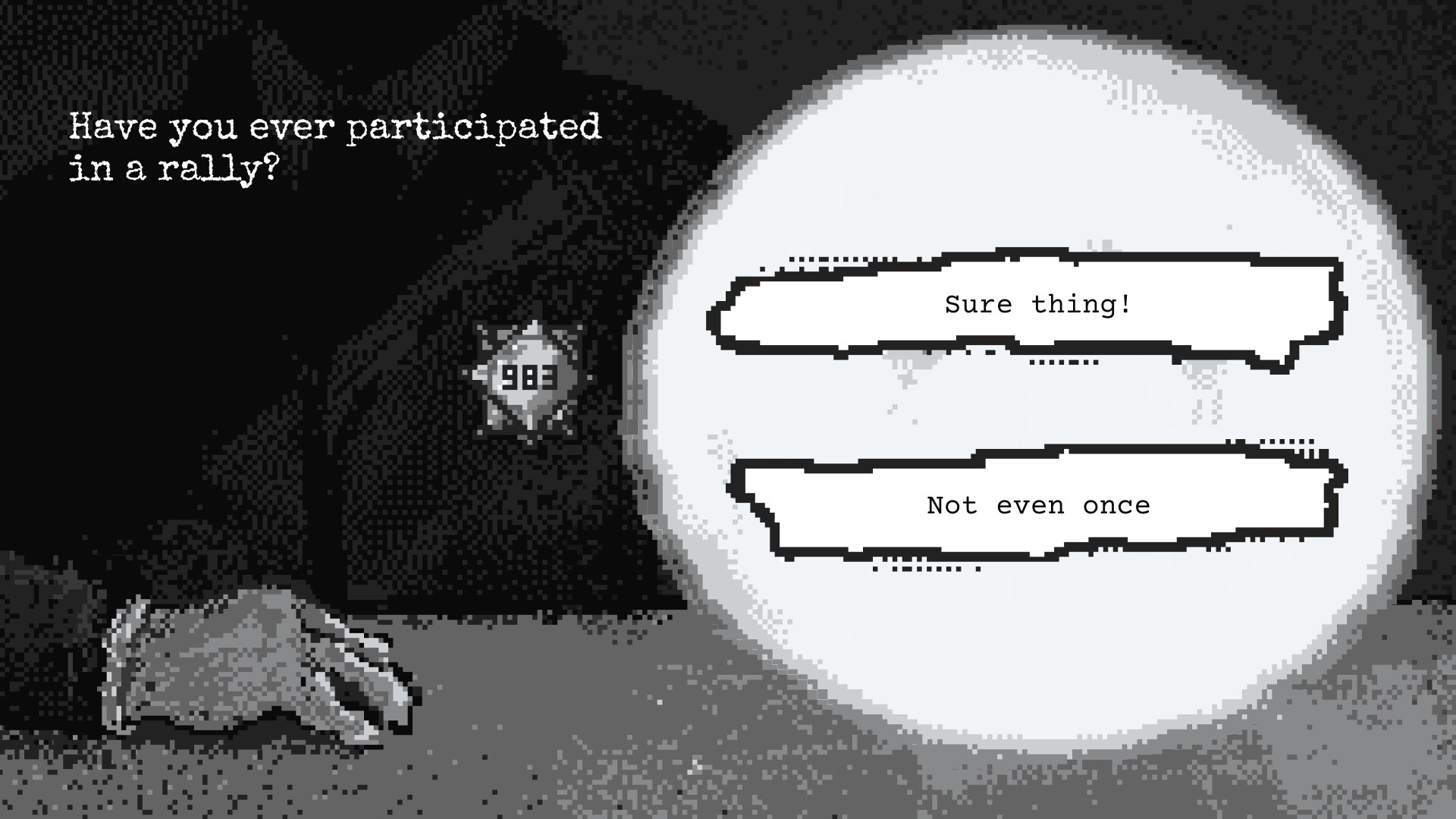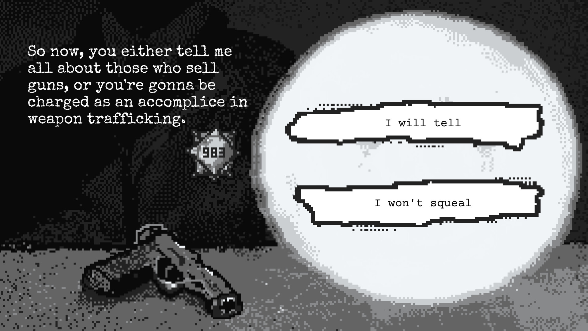 The blinding light wakes you up. The interrogation begins, and someone across the table demands the answers. You play as a regular folk, Dough, and your answers will shape them as a person with their own views and attitude. But keep in mind, some of those could be violations of the law.