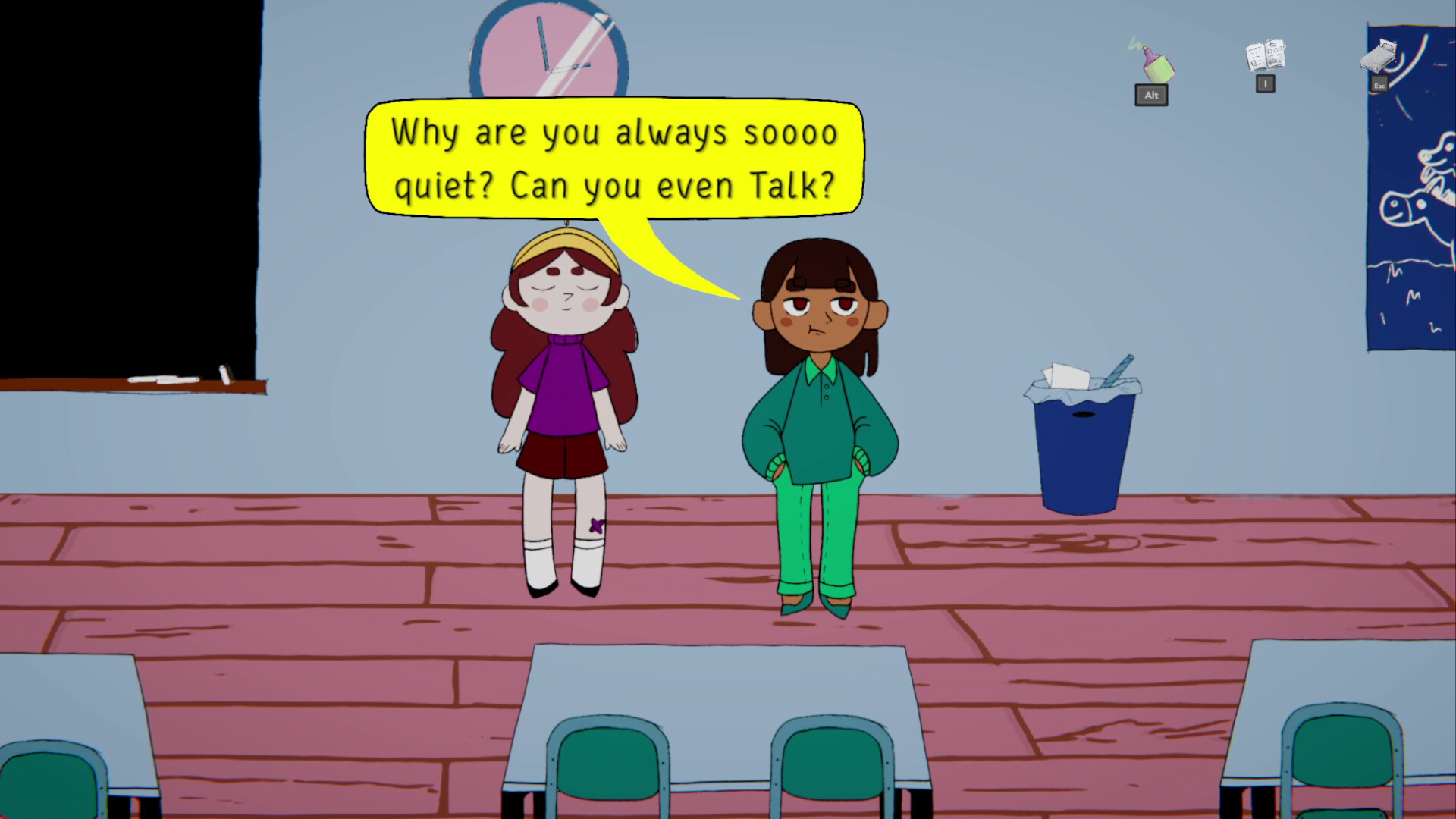 Canvas of Thoughts is a cozy story-driven point-and-click adventure that invites players to explore familiar places: a classroom, a playground, a shopping mall, family gatherings, and a doctor’s office, through a neurodivergent perspective. Each location forms a self-contained chapter with its own emotional tone, visual palette, and interactive challenges.
