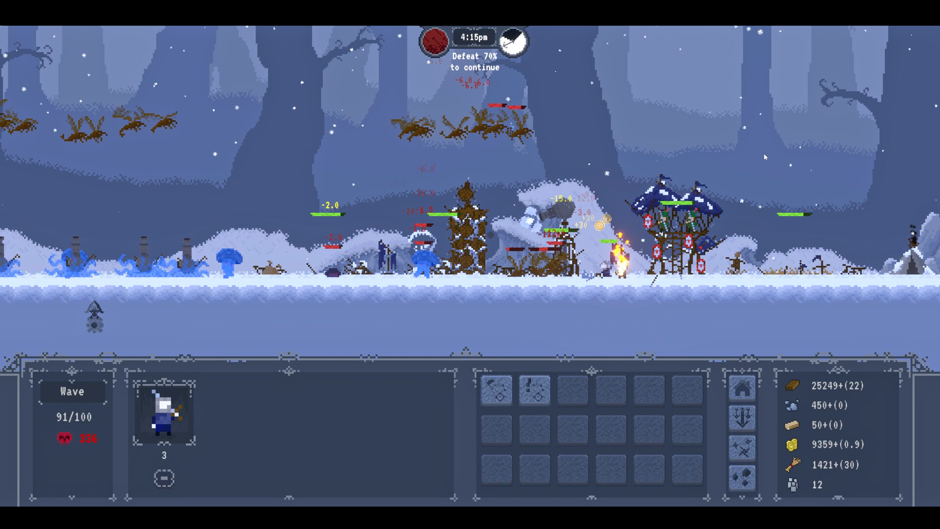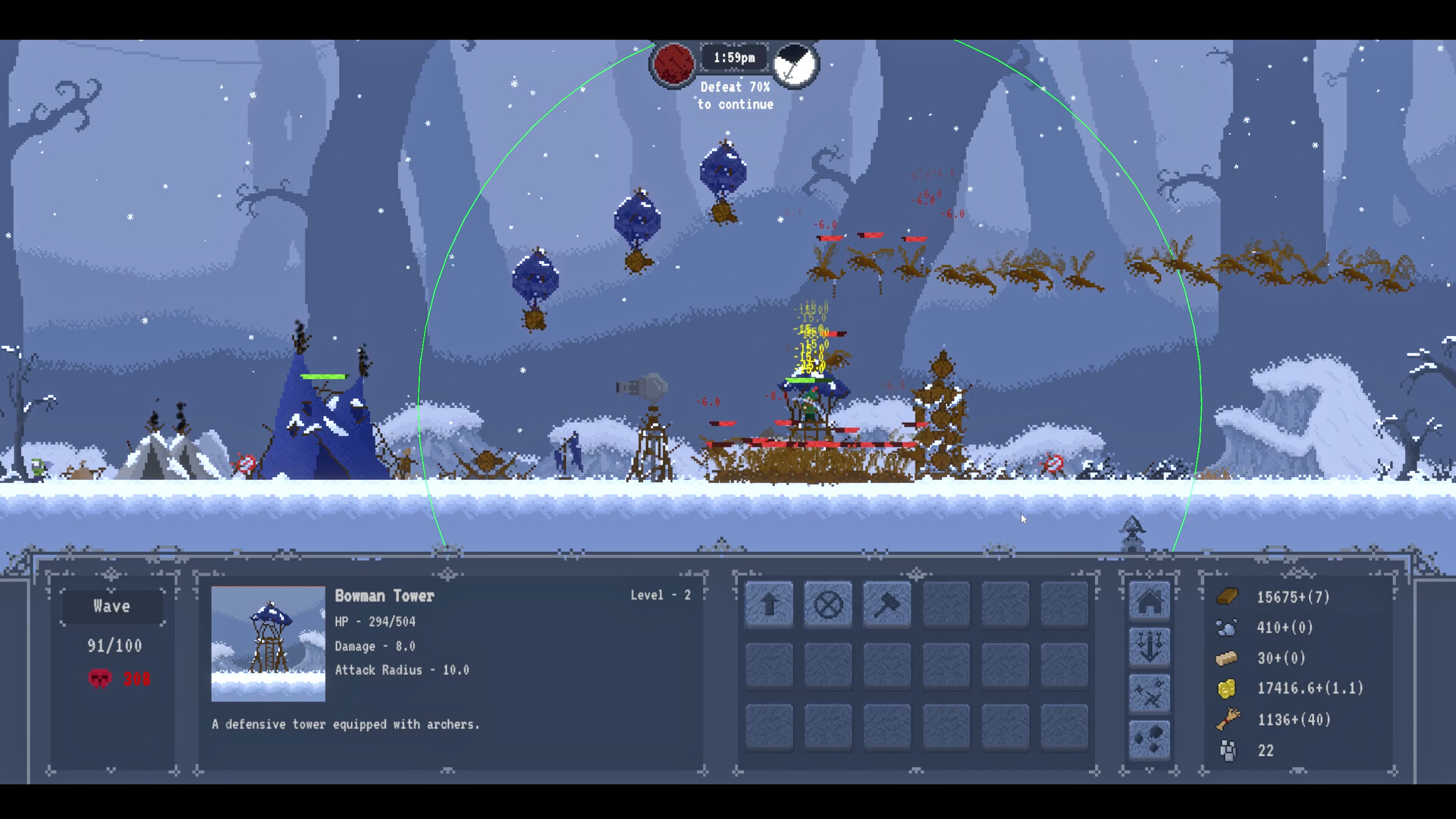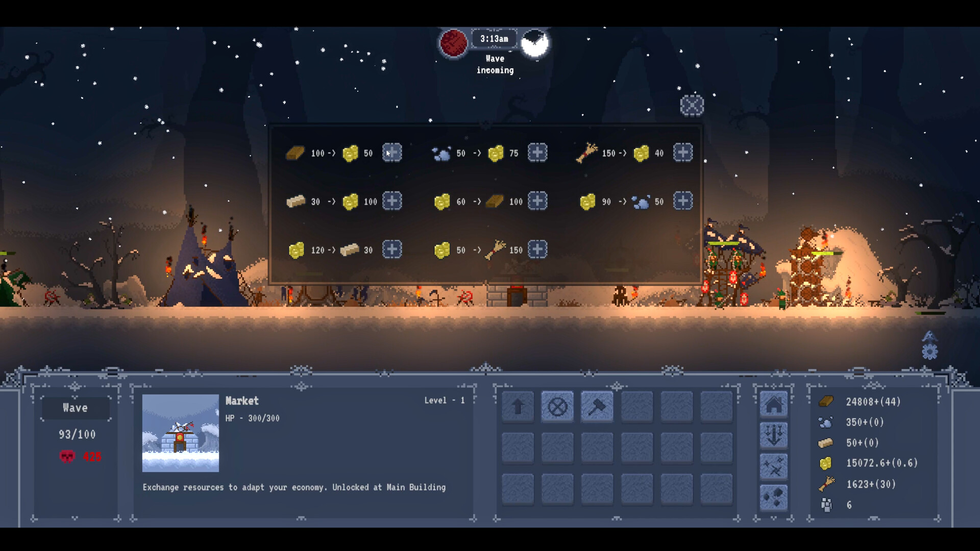Tower defense with resource management. Defend against waves of enemies while building your settlement. Gather resources, construct towers, recruit units, and upgrade buildings to survive.