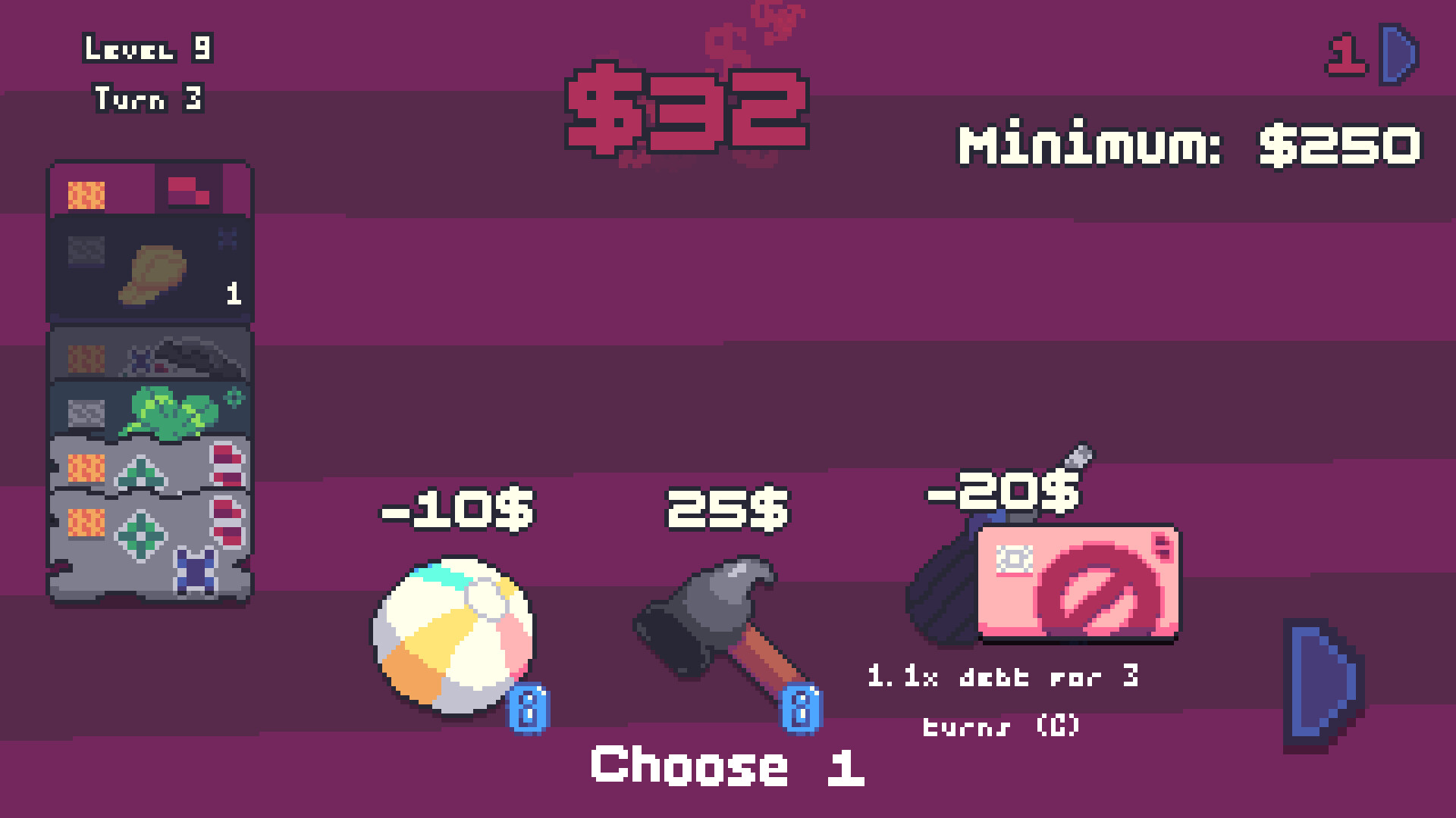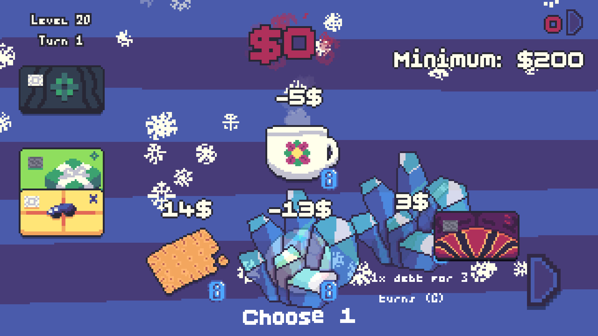 The Debtician is a quirky debt-gaining game where you try and survive impossible financial situations. As you assume your new jobs, mix different credit cards and buy numerous items to escape the capitalist world of Tollia for as long as possible!