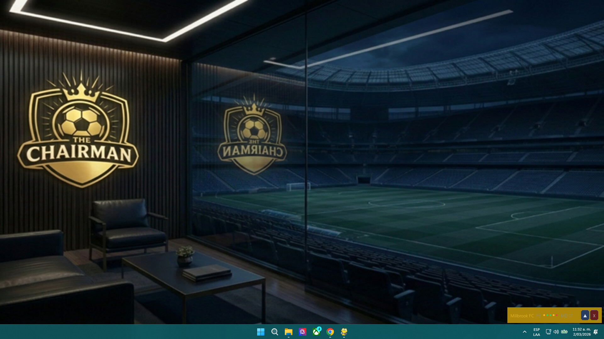 The Chairman lives in the bottom corner of your screen while you work, study, or do anything else. Matches simulate automatically. Check in when you have a moment. Make your decisions. Let the season run.