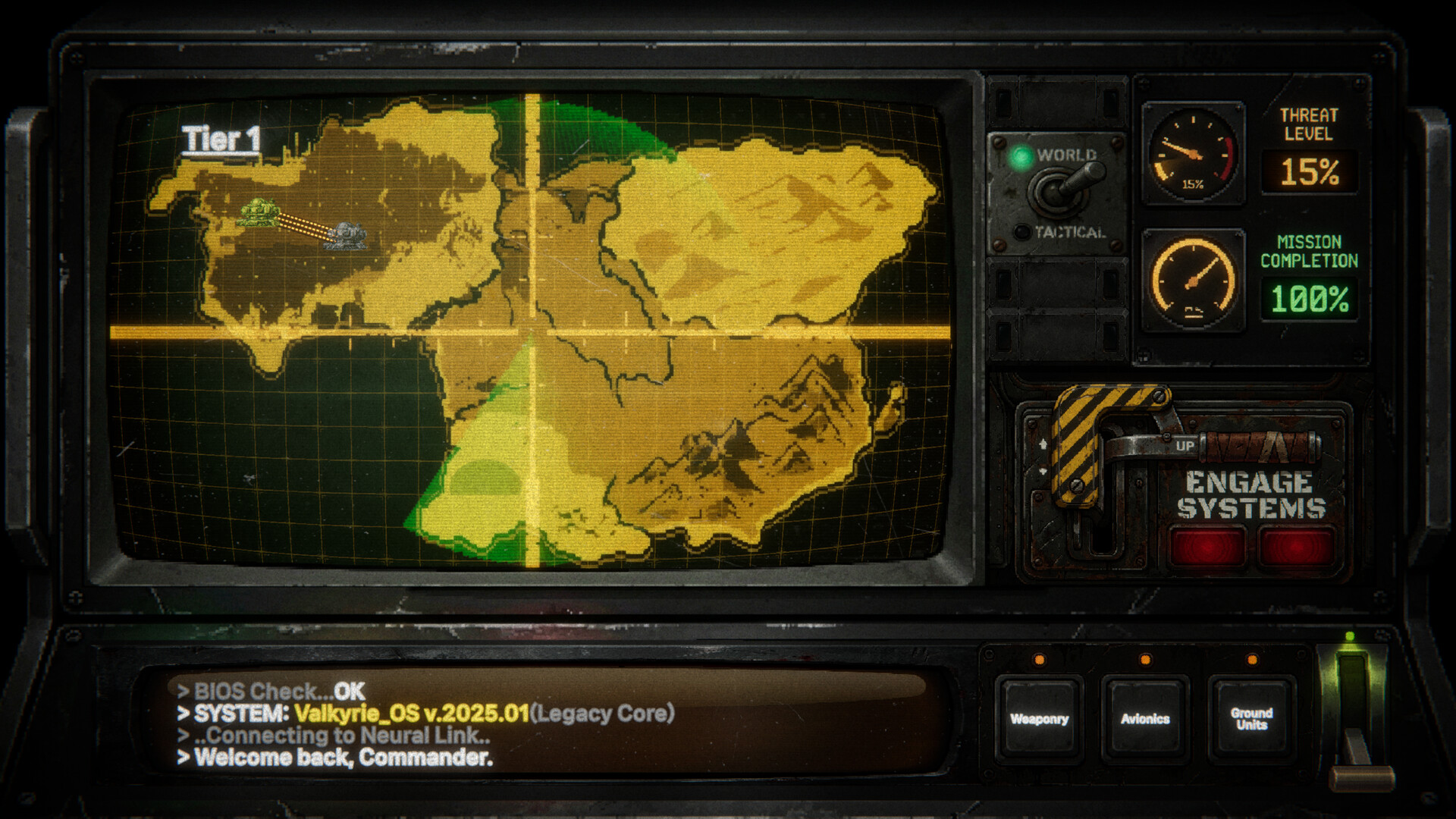 실시간 전장을 지휘하며 근접항공지원(CAS)을 수행하는 2D 액션 슈팅 게임으로, 전략과 로그라이트 진행이 결합된 전투 경험을 제공합니다.
